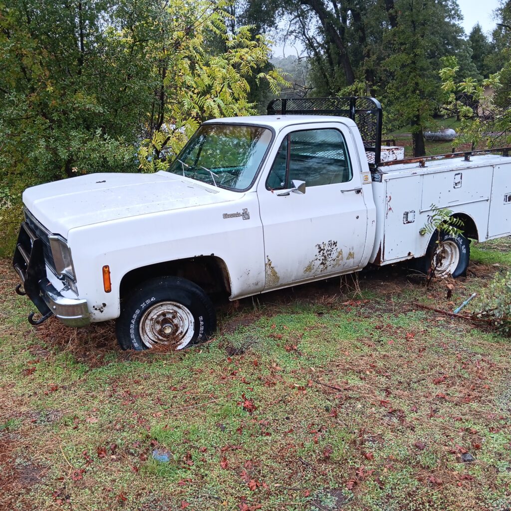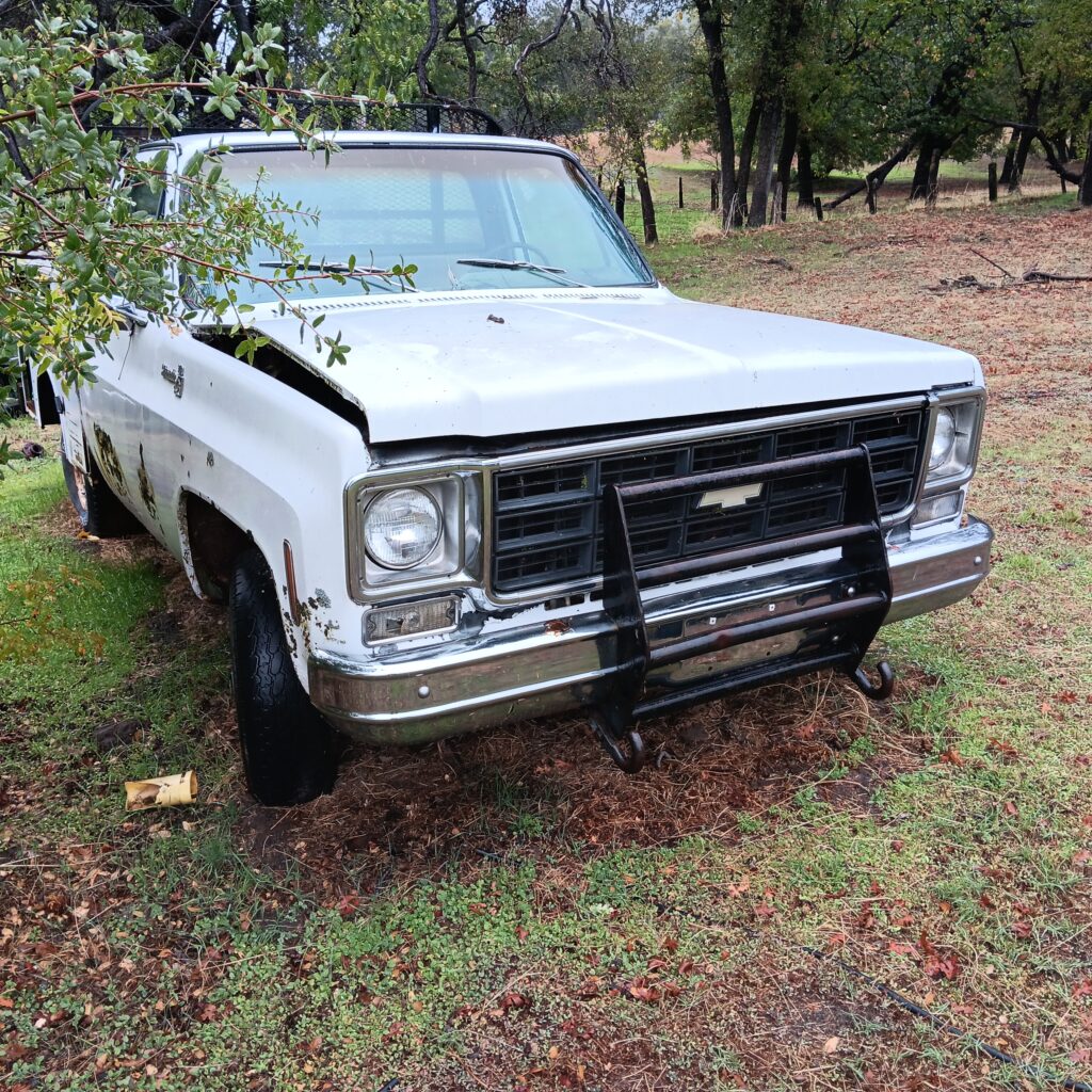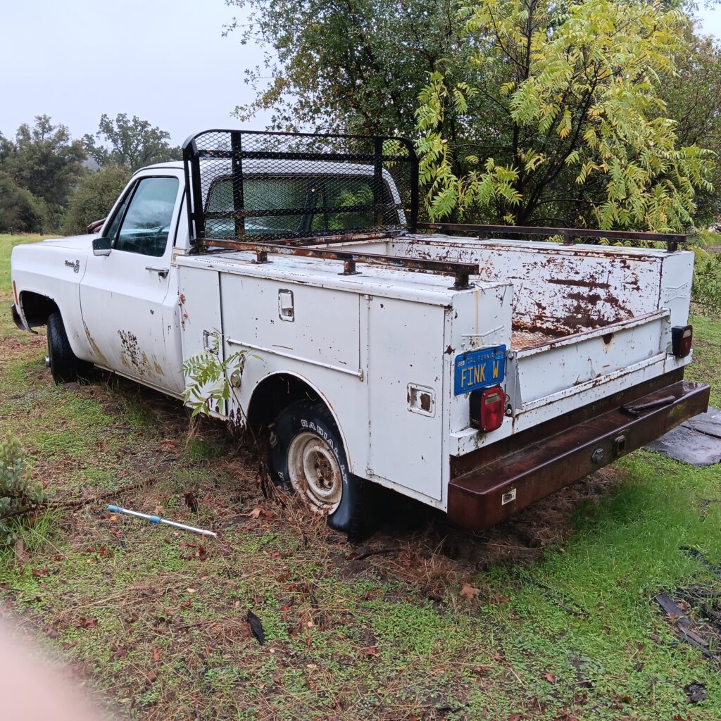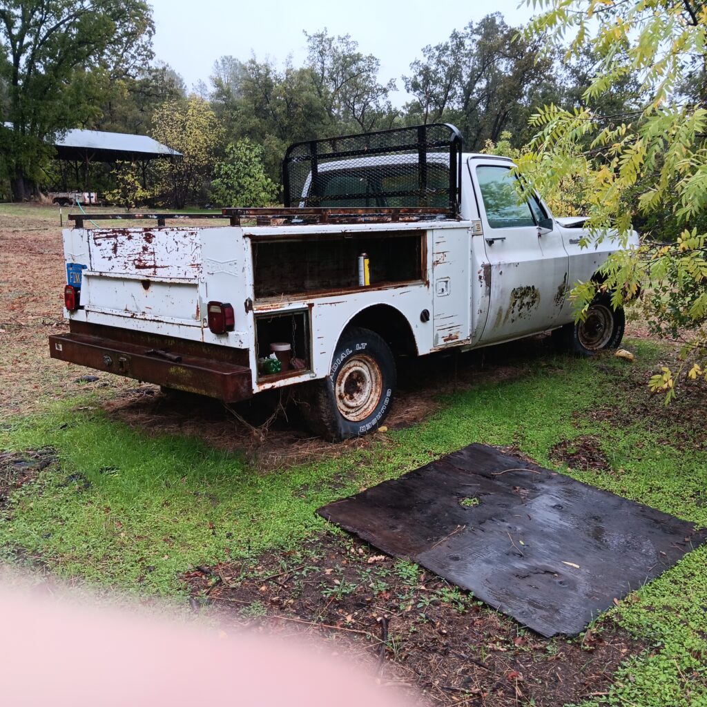 We also have for you a 70s Chevy square body sport side with a stubby work bed attached. Bed included.