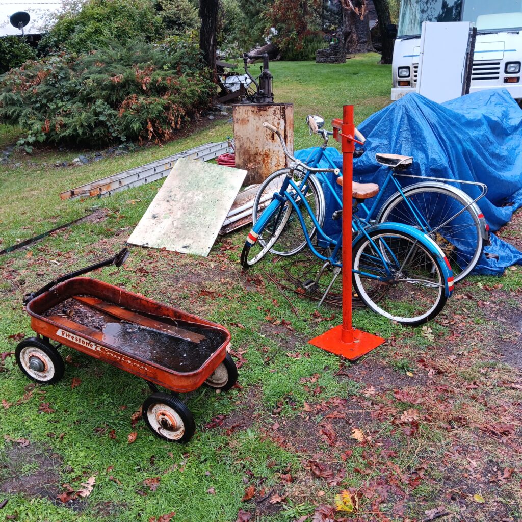 Lots of fun rusty stuff! Tools, yard art, chains, fencing, bicycles. And much much more!