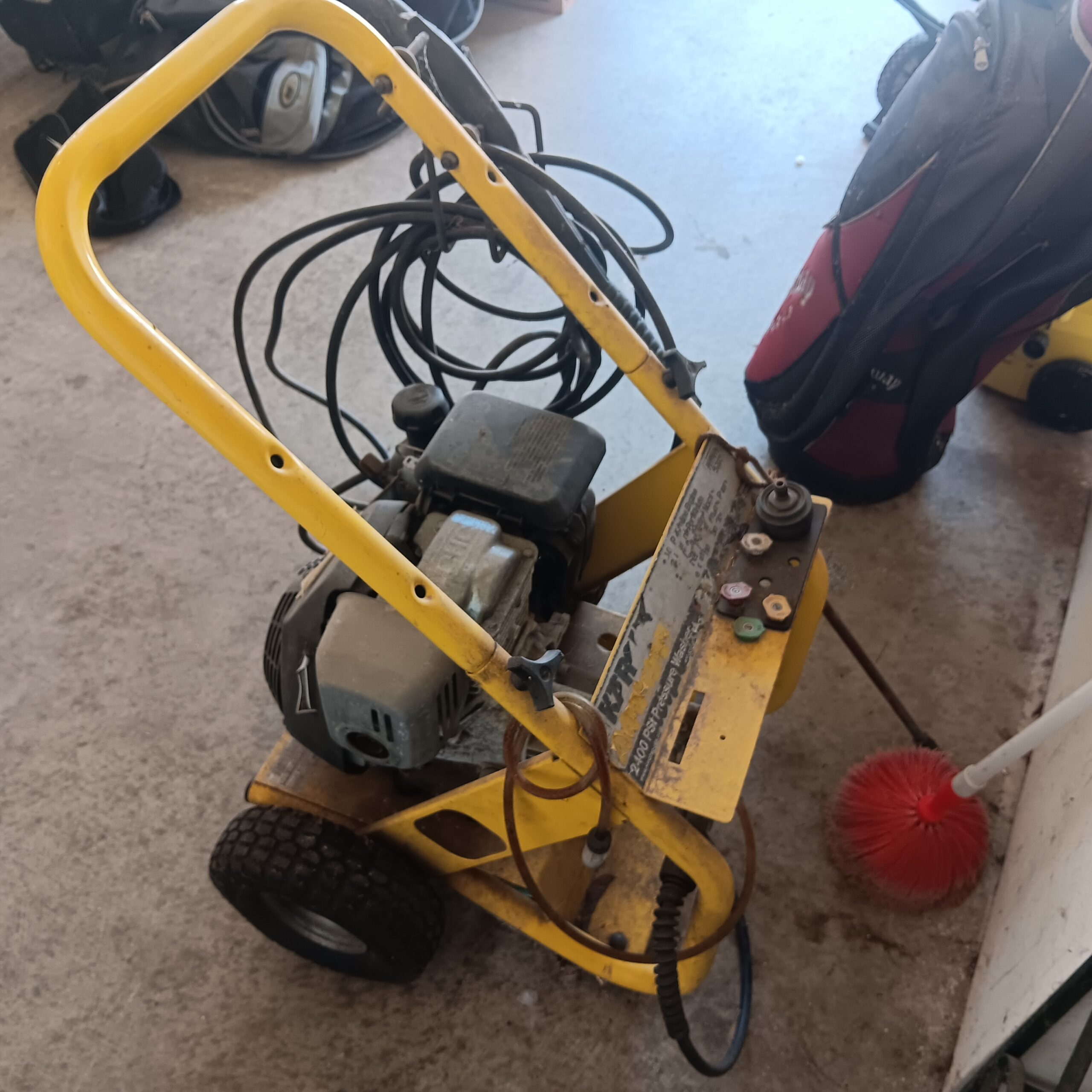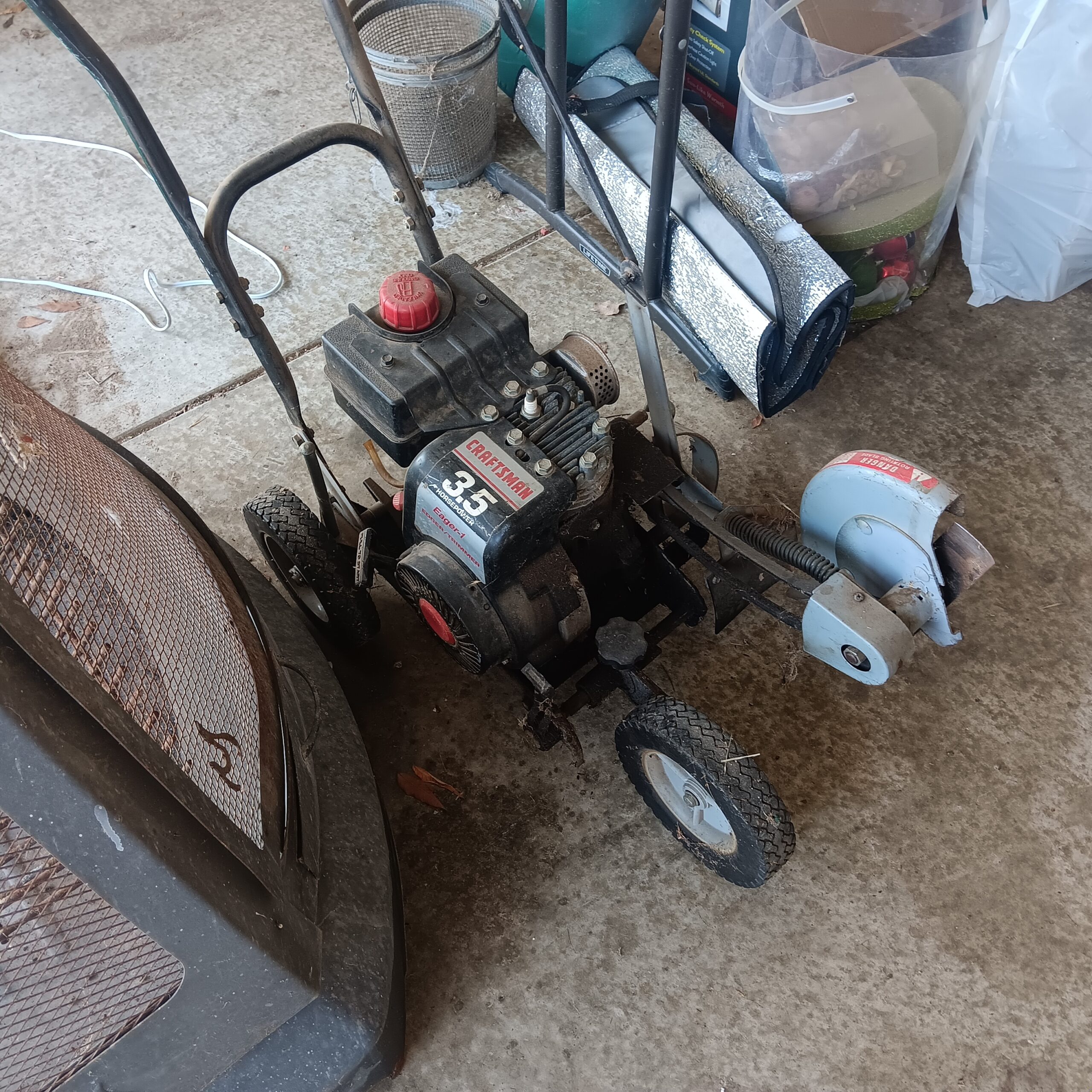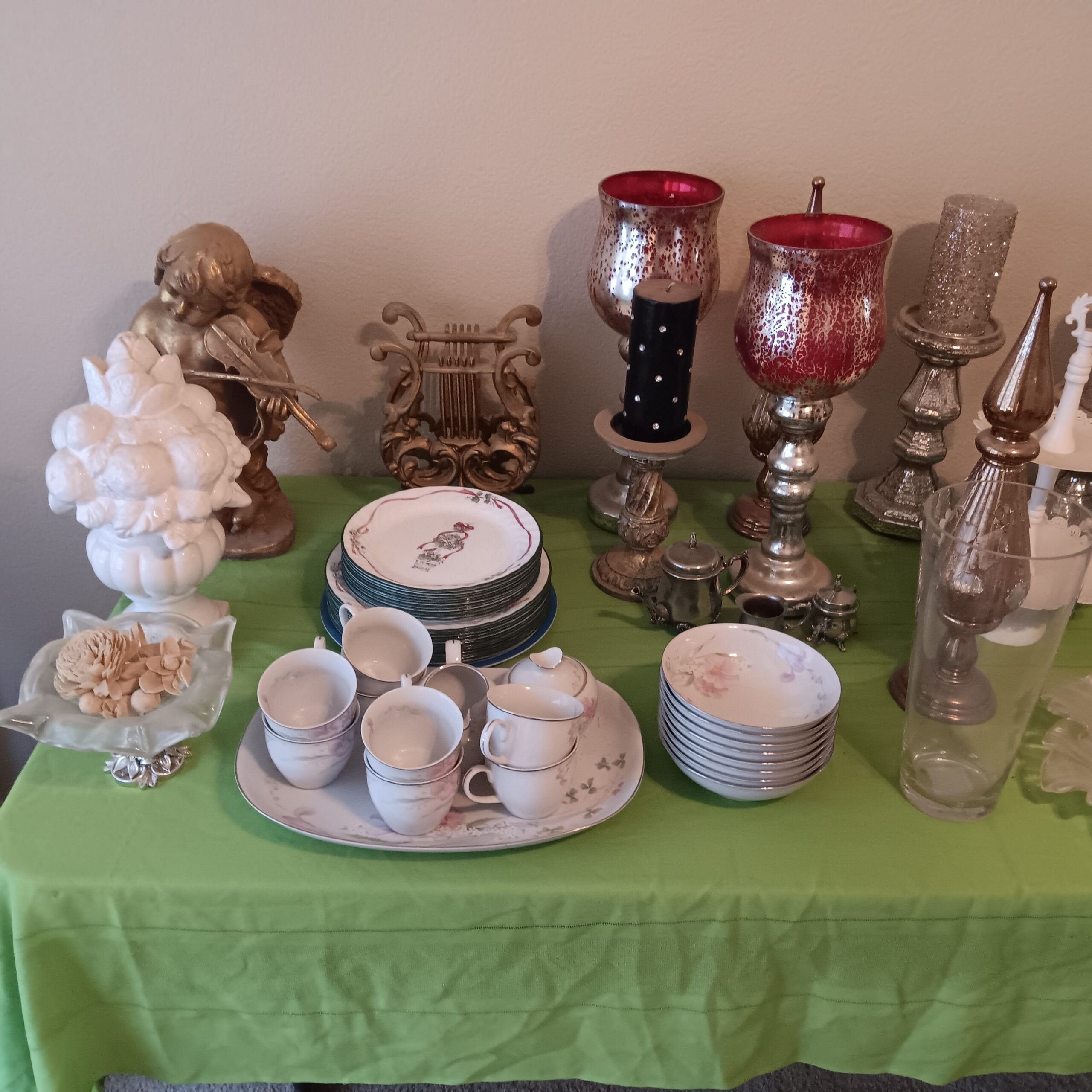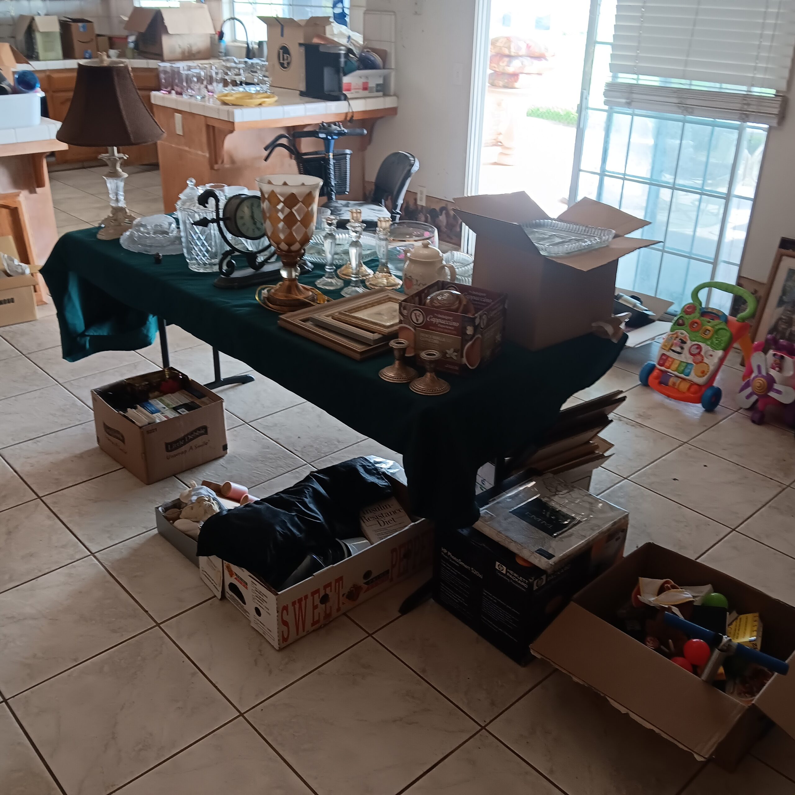 Lots of Golf clubs and golf bags, lawn mower, edger, pressure washer, Fishing gear, patio furniture, home furnishing, kitchen ware, Samsung refrigerator, large fountain, lots of women’s clothes in great / new condition, curved glass curio, upright piano, shelving, cabinets, crystal, and lots of fun stuff to dig through!