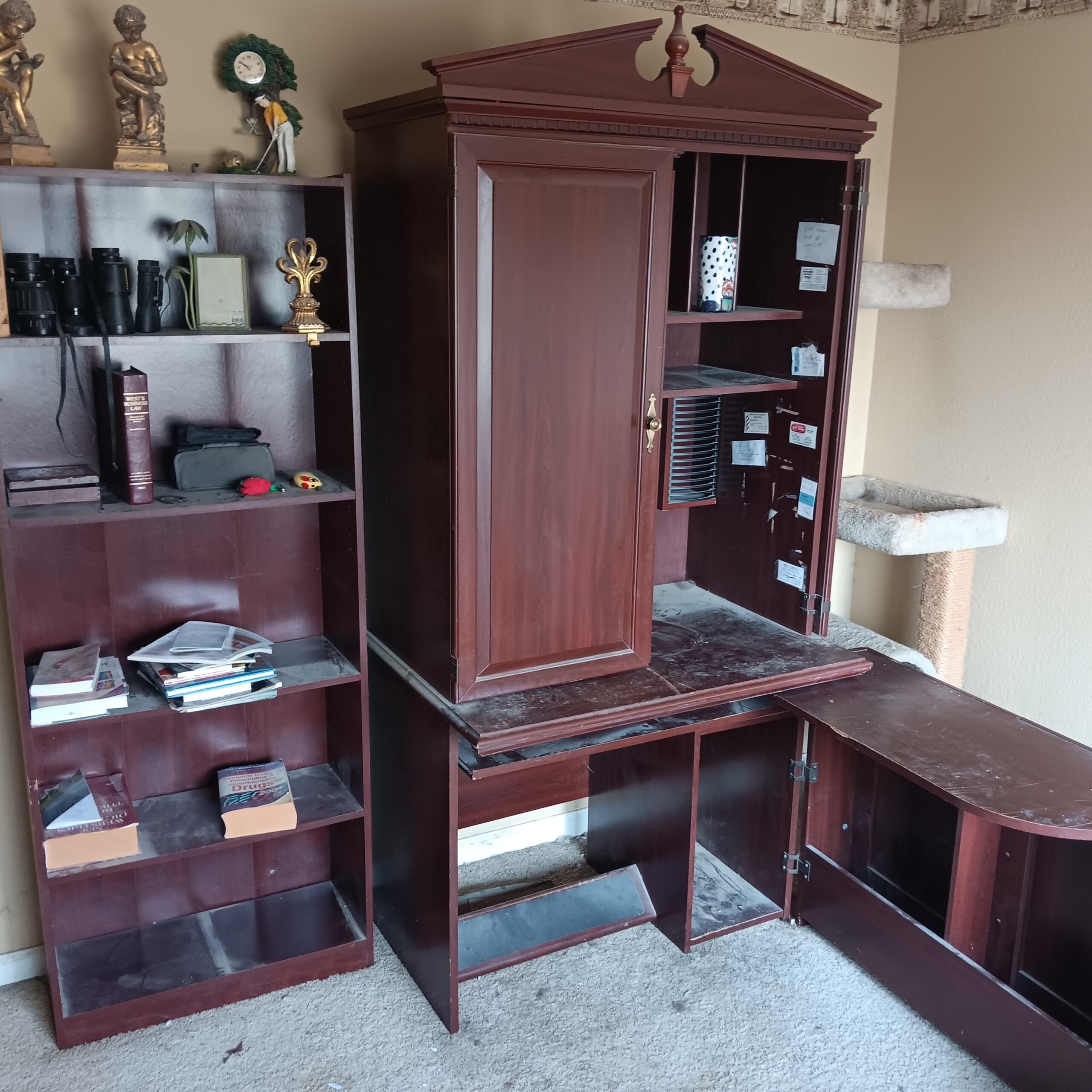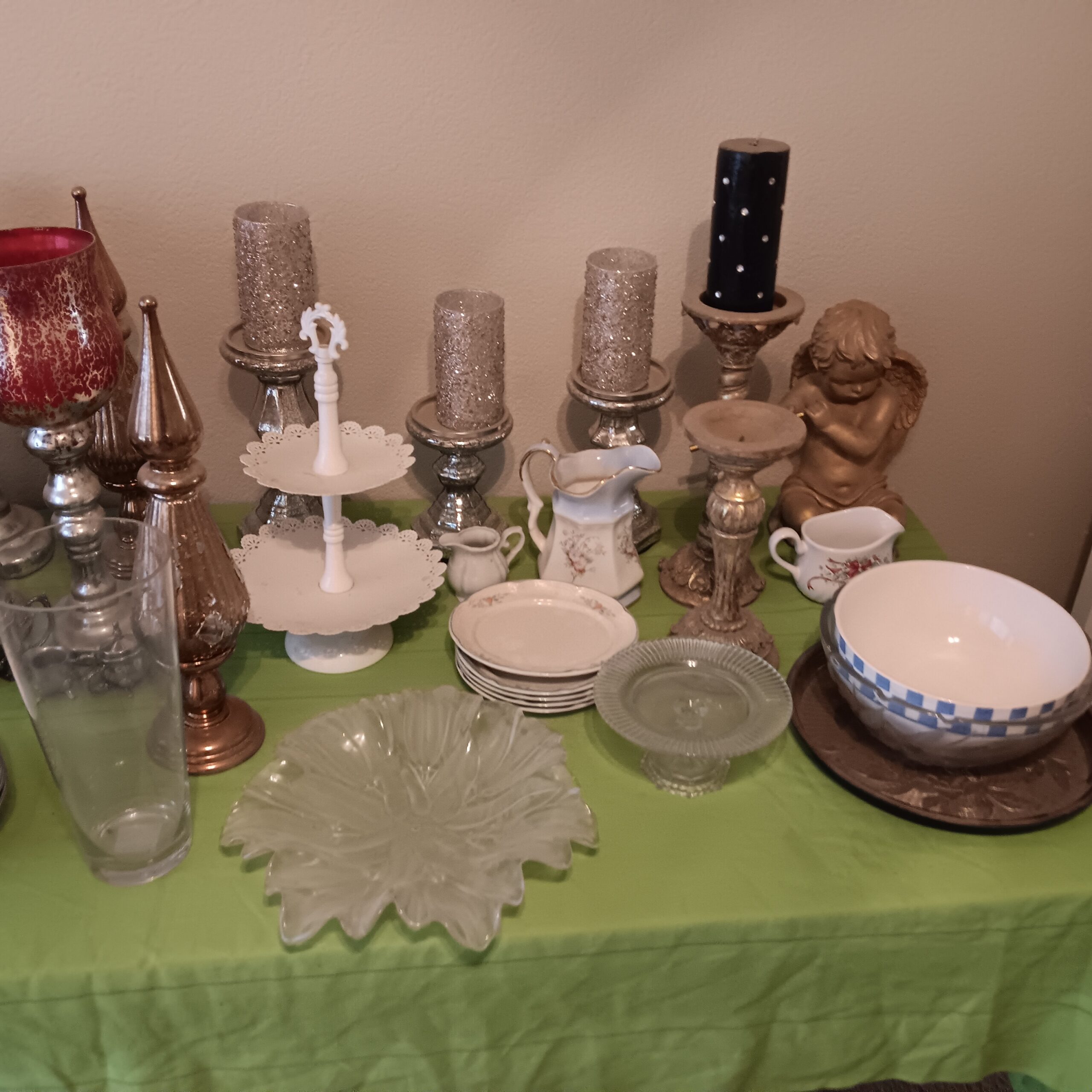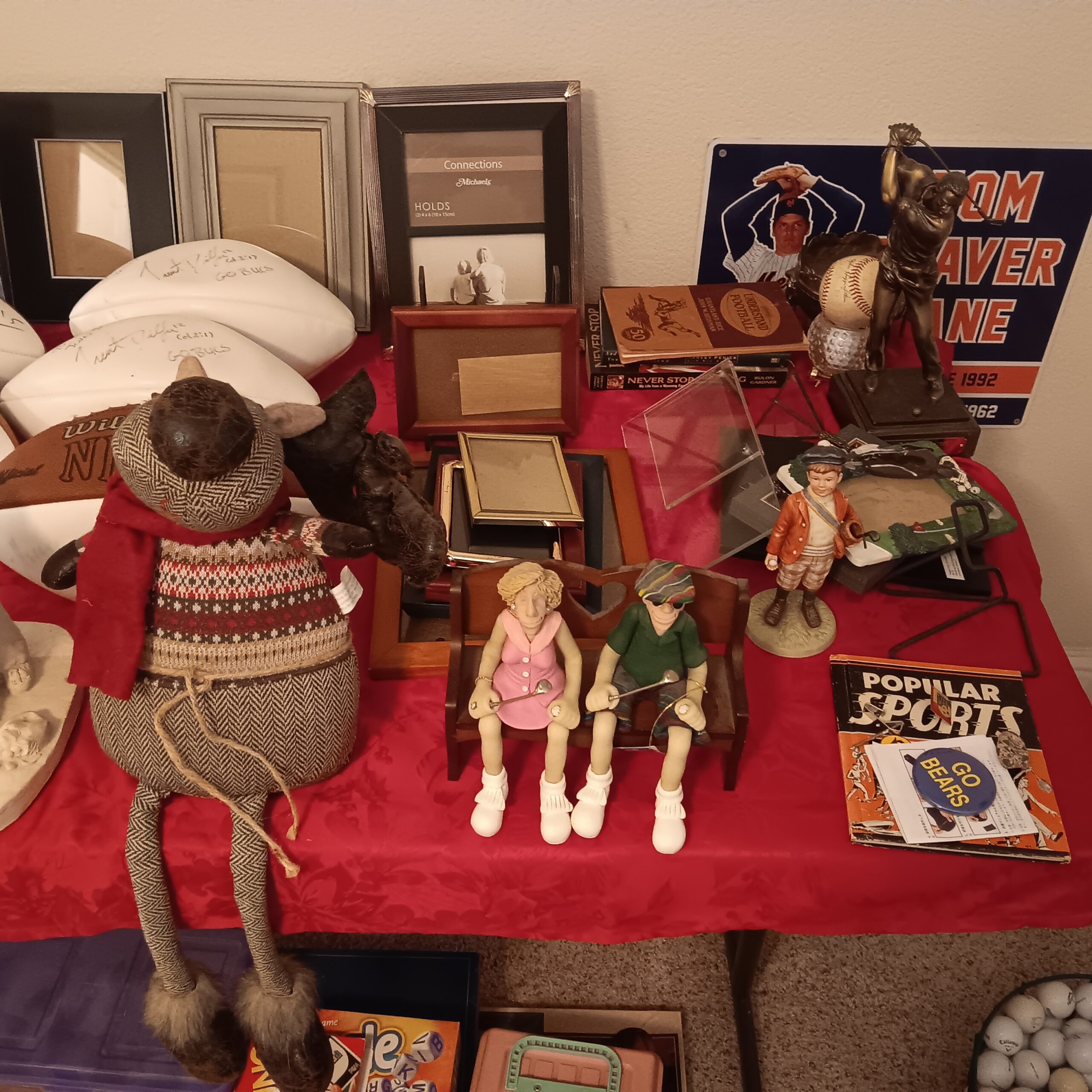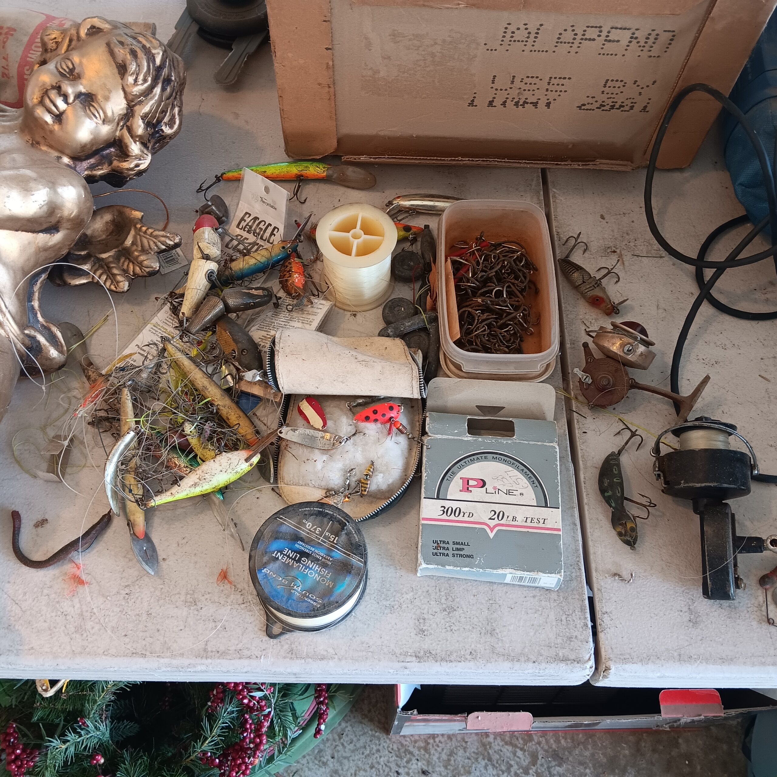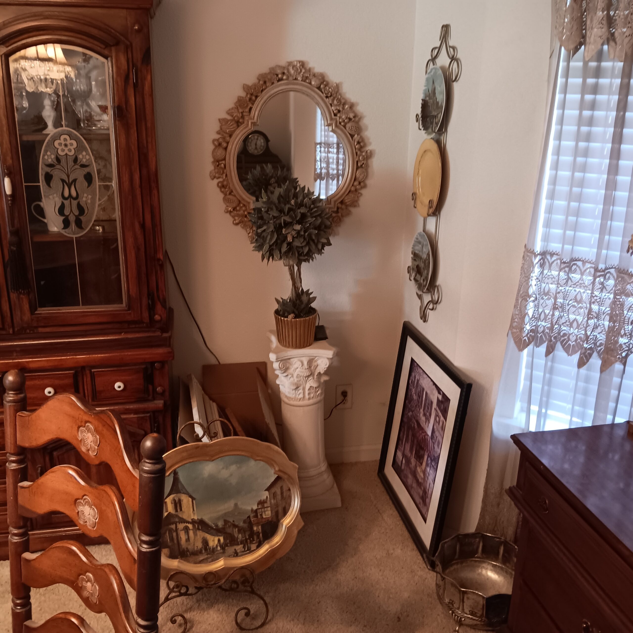 Lots of Golf clubs and golf bags, lawn mower, edger, pressure washer, Fishing gear, patio furniture, home furnishing, kitchen ware, Samsung refrigerator, large fountain, lots of women’s clothes in great / new condition, curved glass curio, upright piano, shelving, cabinets, crystal, and lots of fun stuff to dig through!