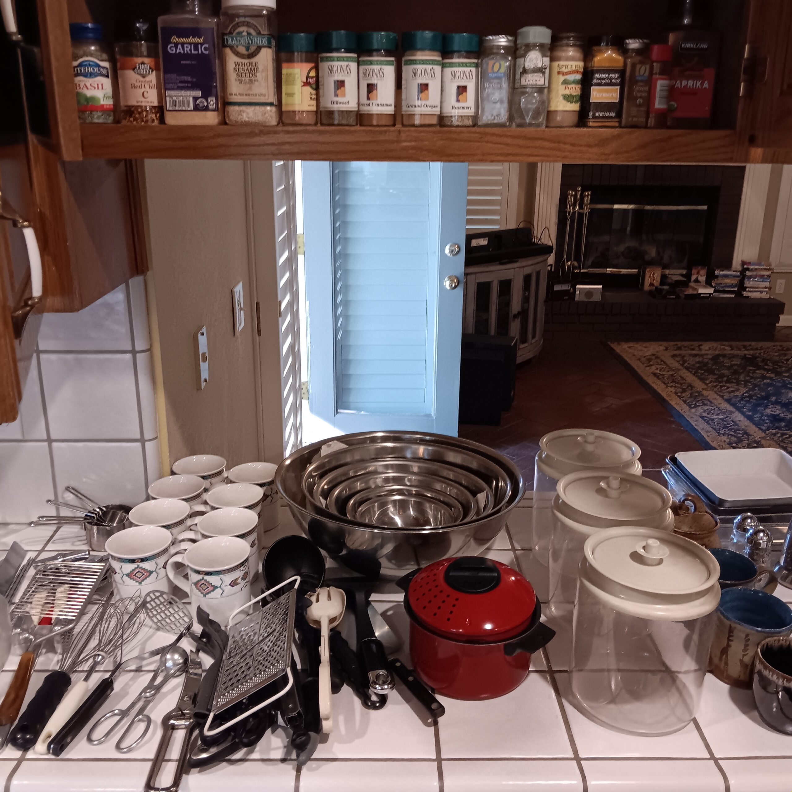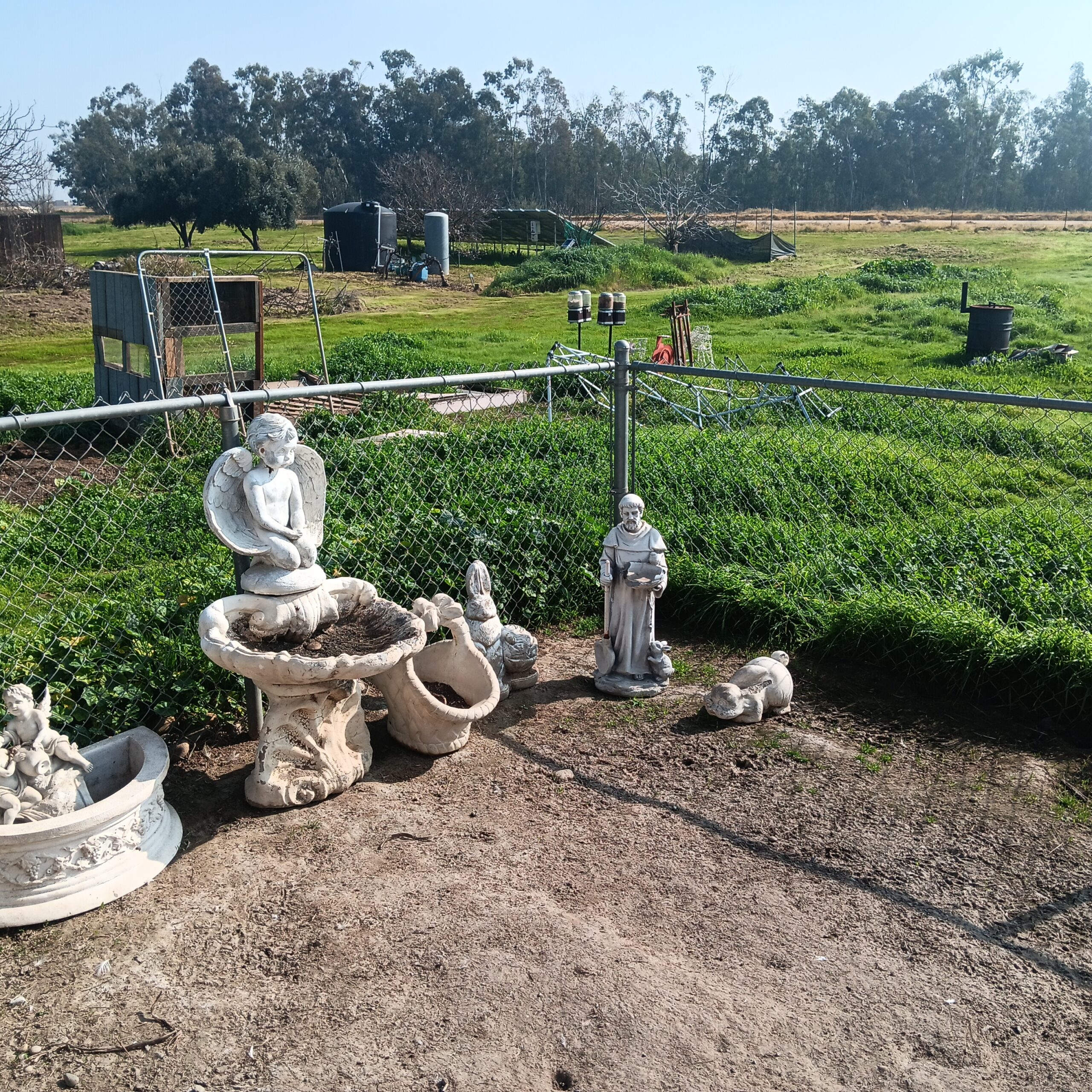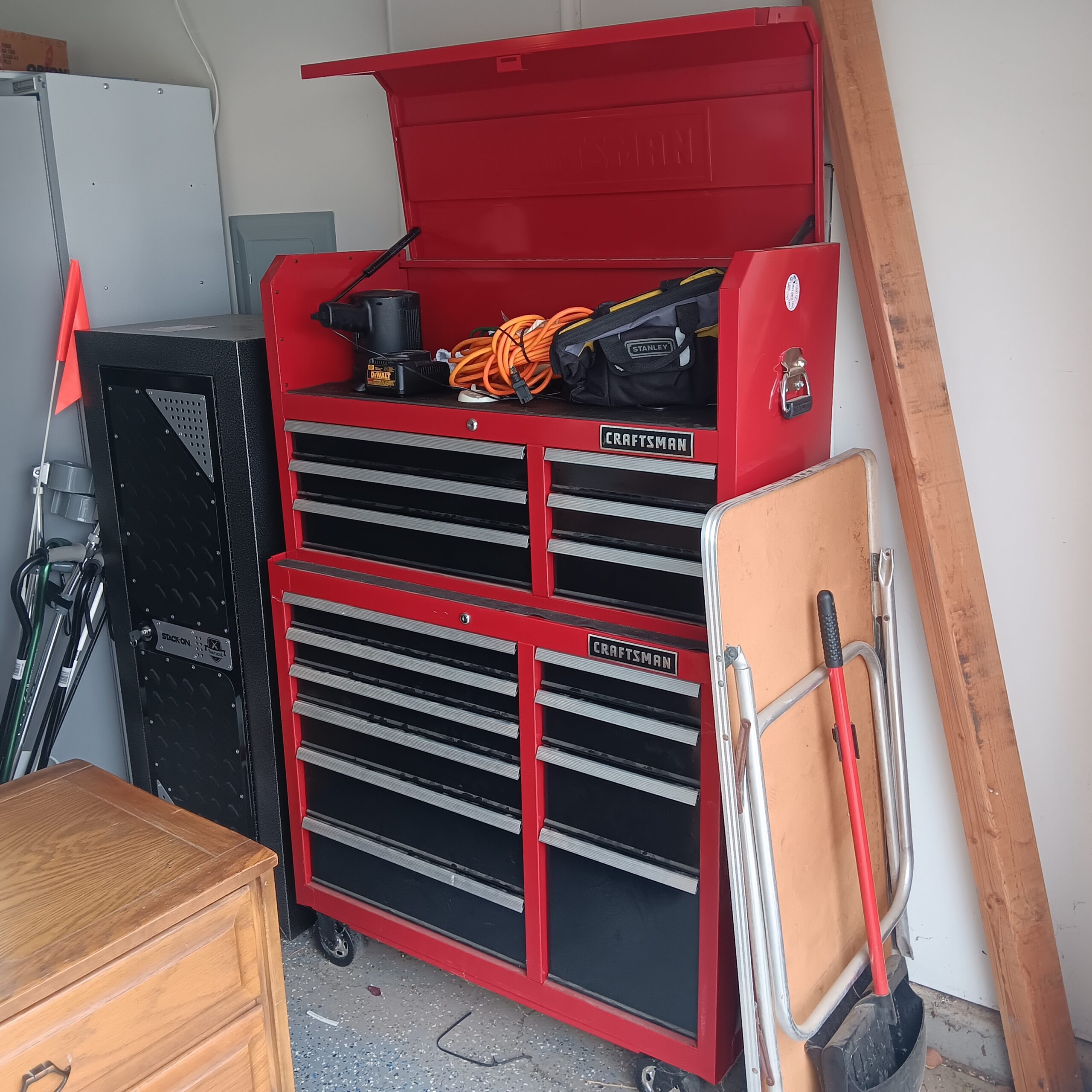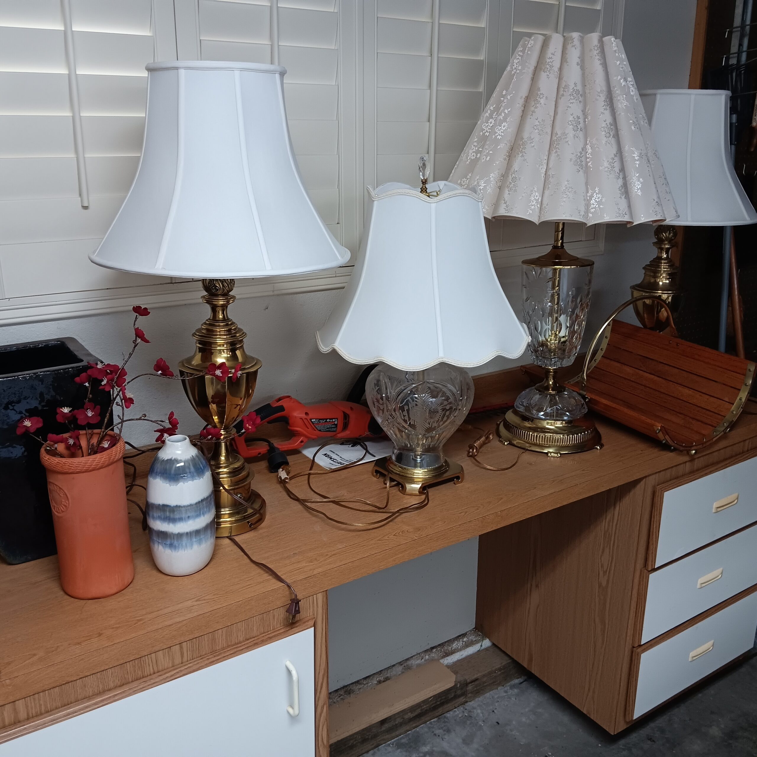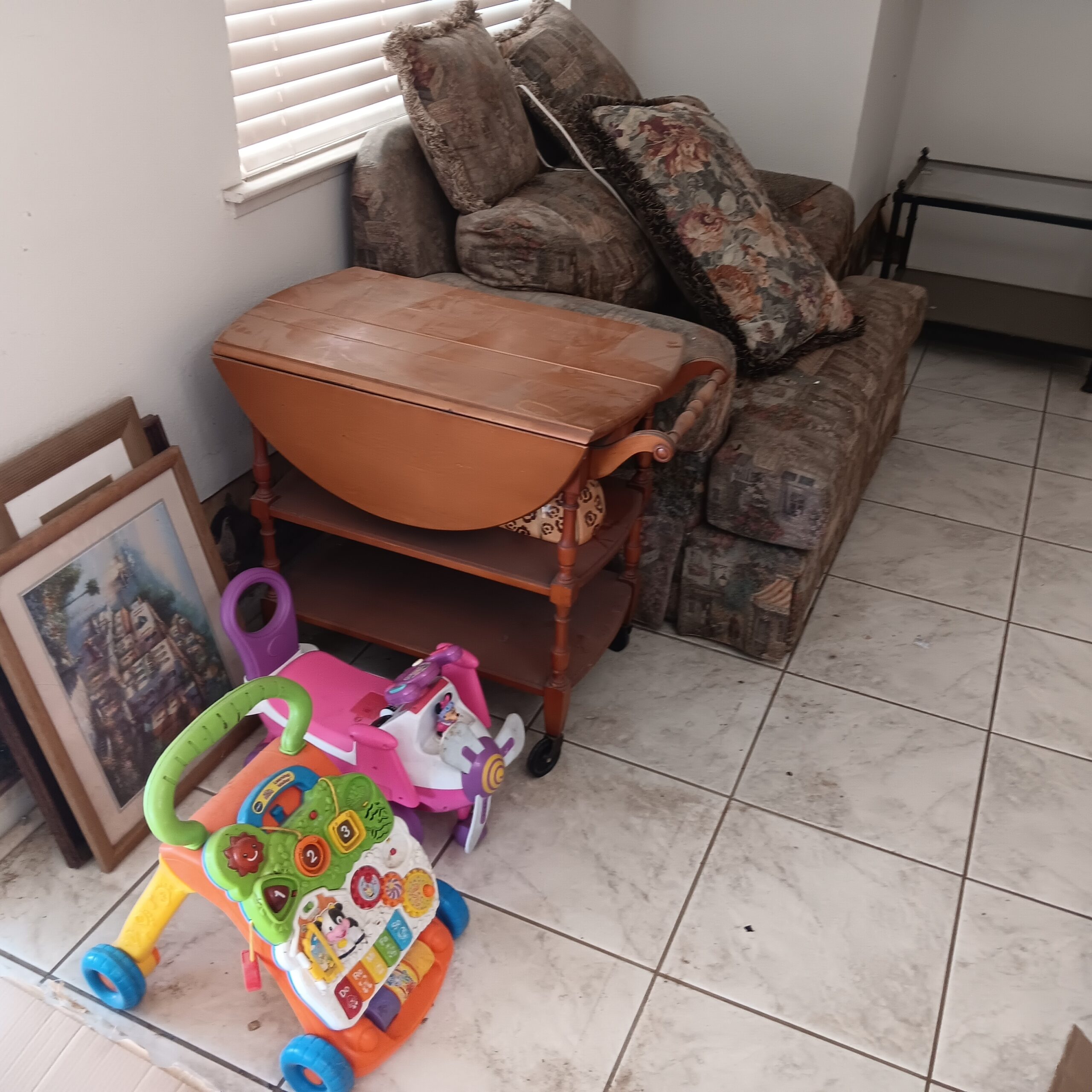 Lots of Golf clubs and golf bags, lawn mower, edger, pressure washer, Fishing gear, patio furniture, home furnishing, kitchen ware, Samsung refrigerator, large fountain, lots of women’s clothes in great / new condition, curved glass curio, upright piano, shelving, cabinets, crystal, and lots of fun stuff to dig through!