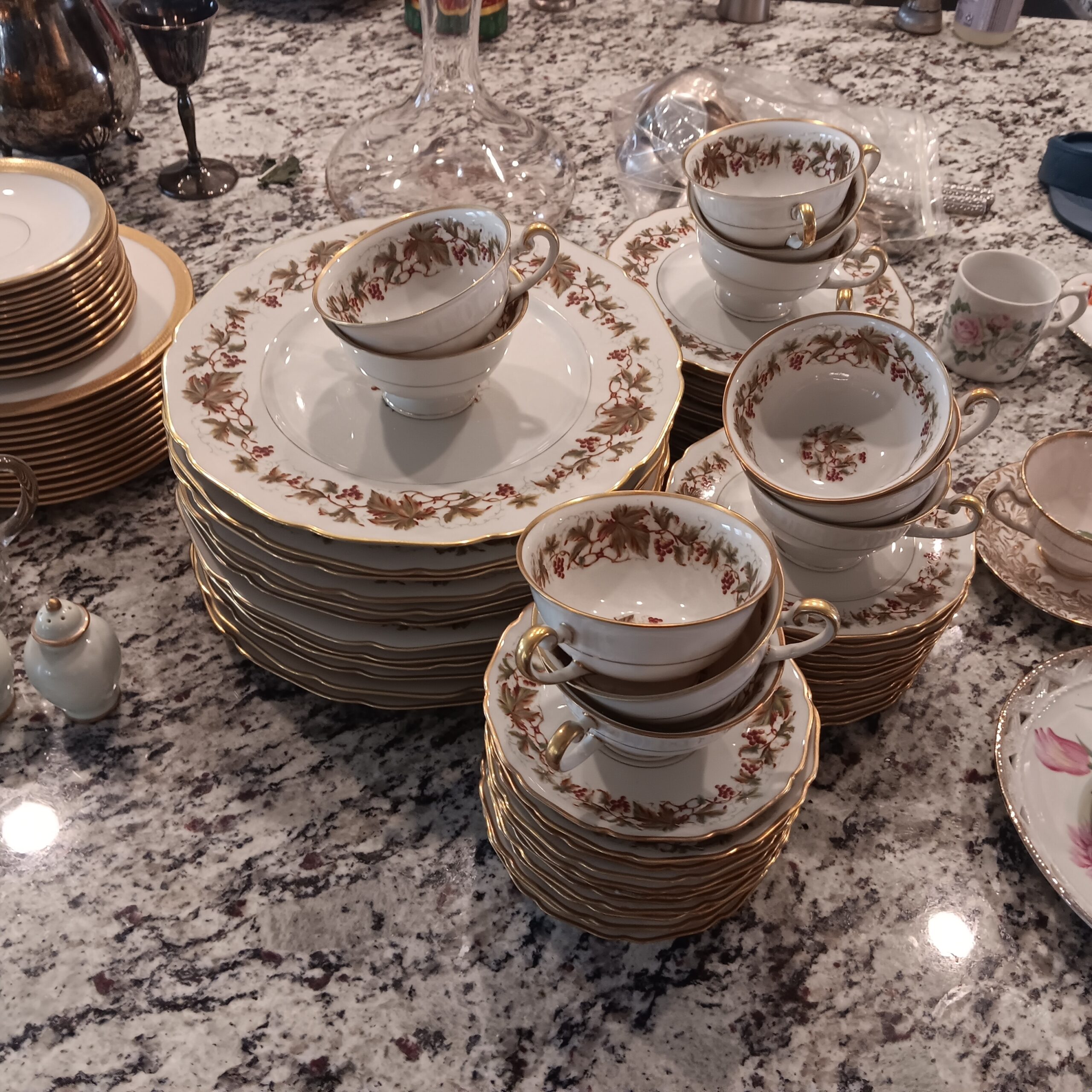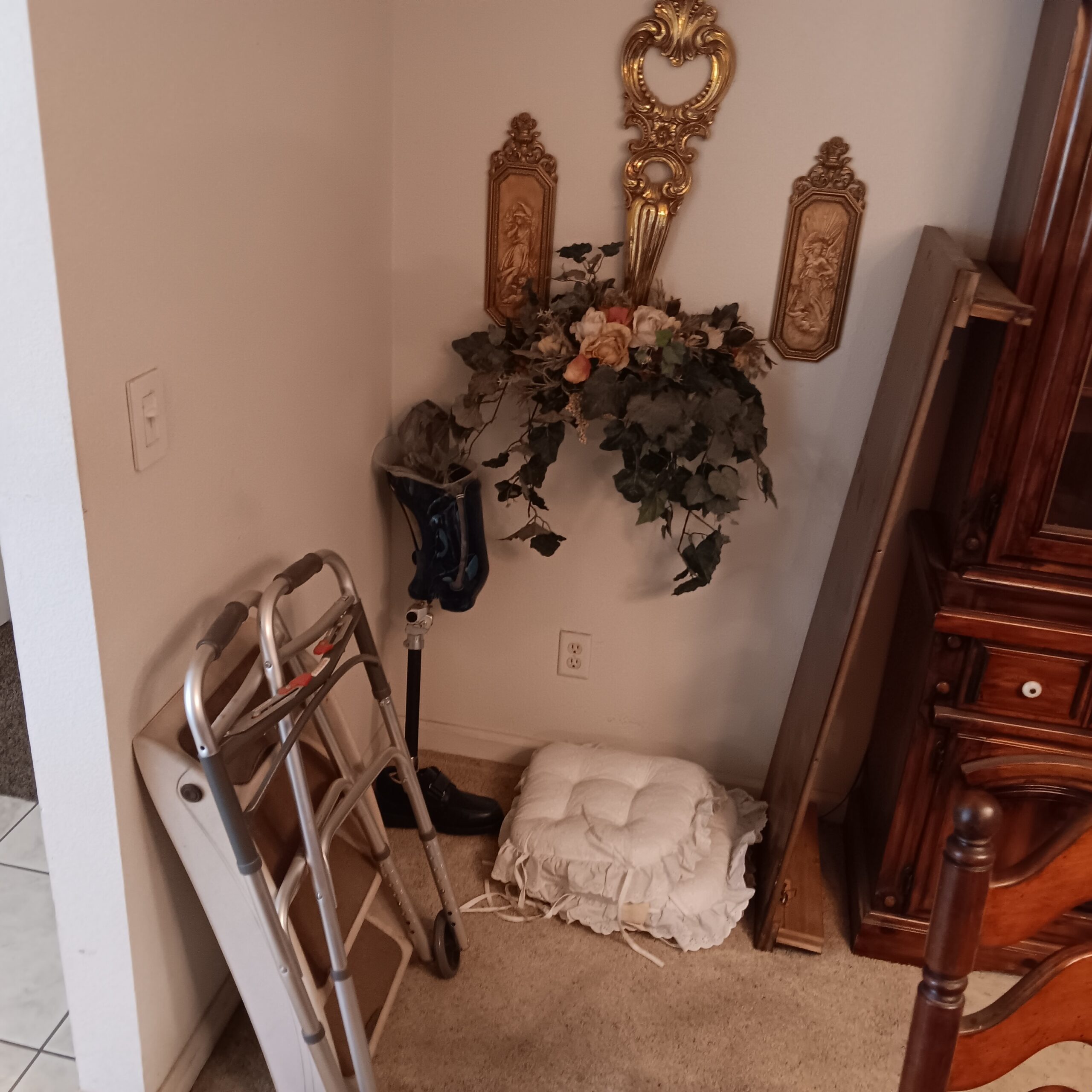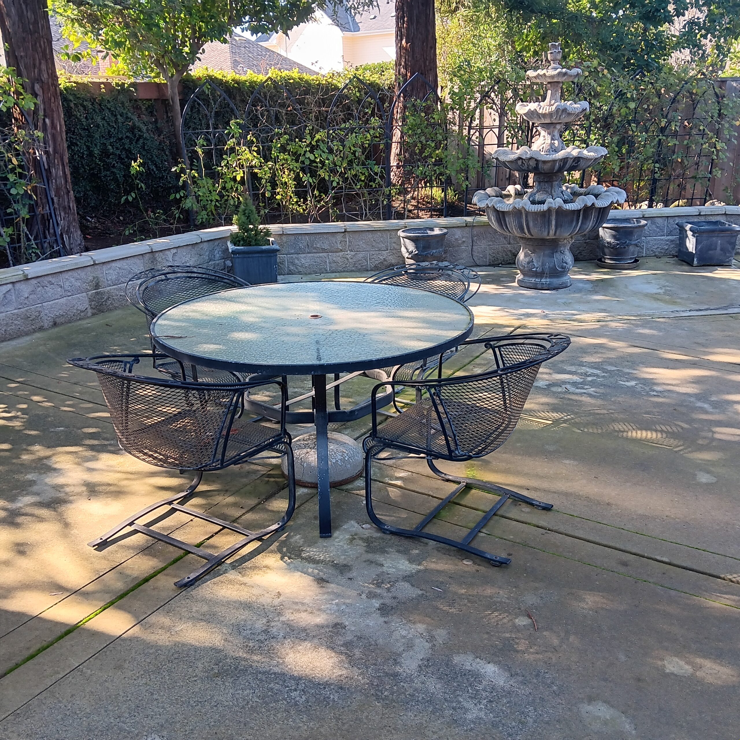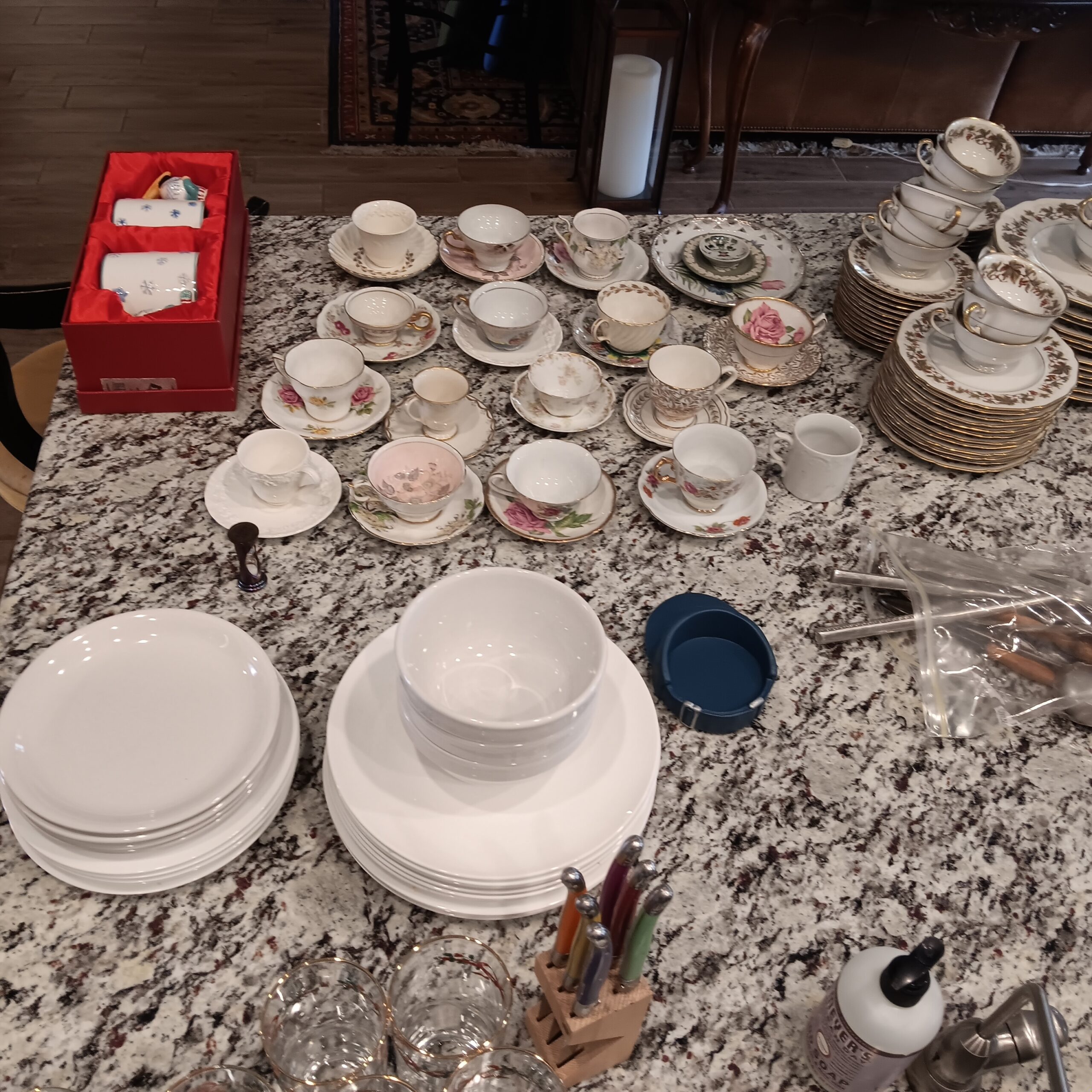 Lots of Golf clubs and golf bags, lawn mower, edger, pressure washer, Fishing gear, patio furniture, home furnishing, kitchen ware, Samsung refrigerator, large fountain, lots of women’s clothes in great / new condition, curved glass curio, upright piano, shelving, cabinets, crystal, and lots of fun stuff to dig through!