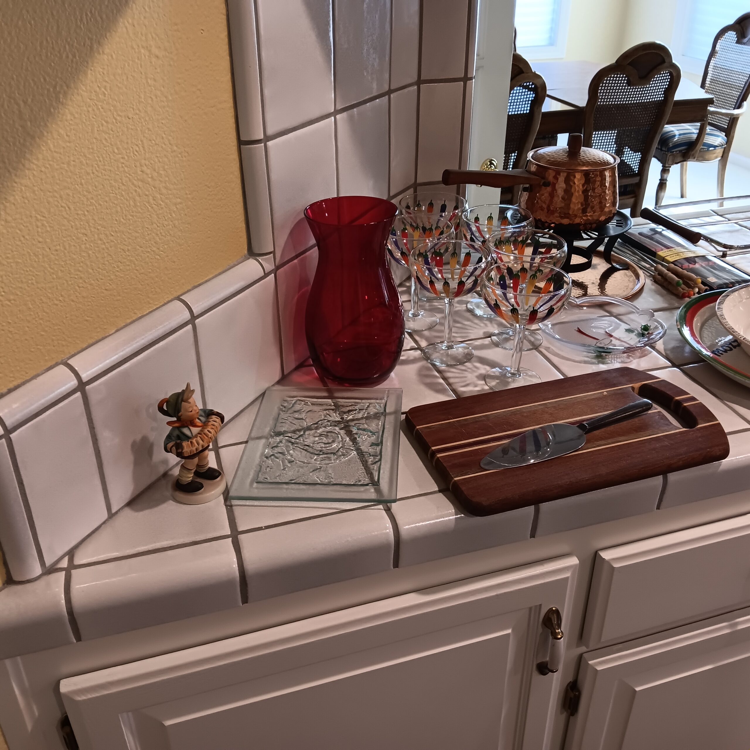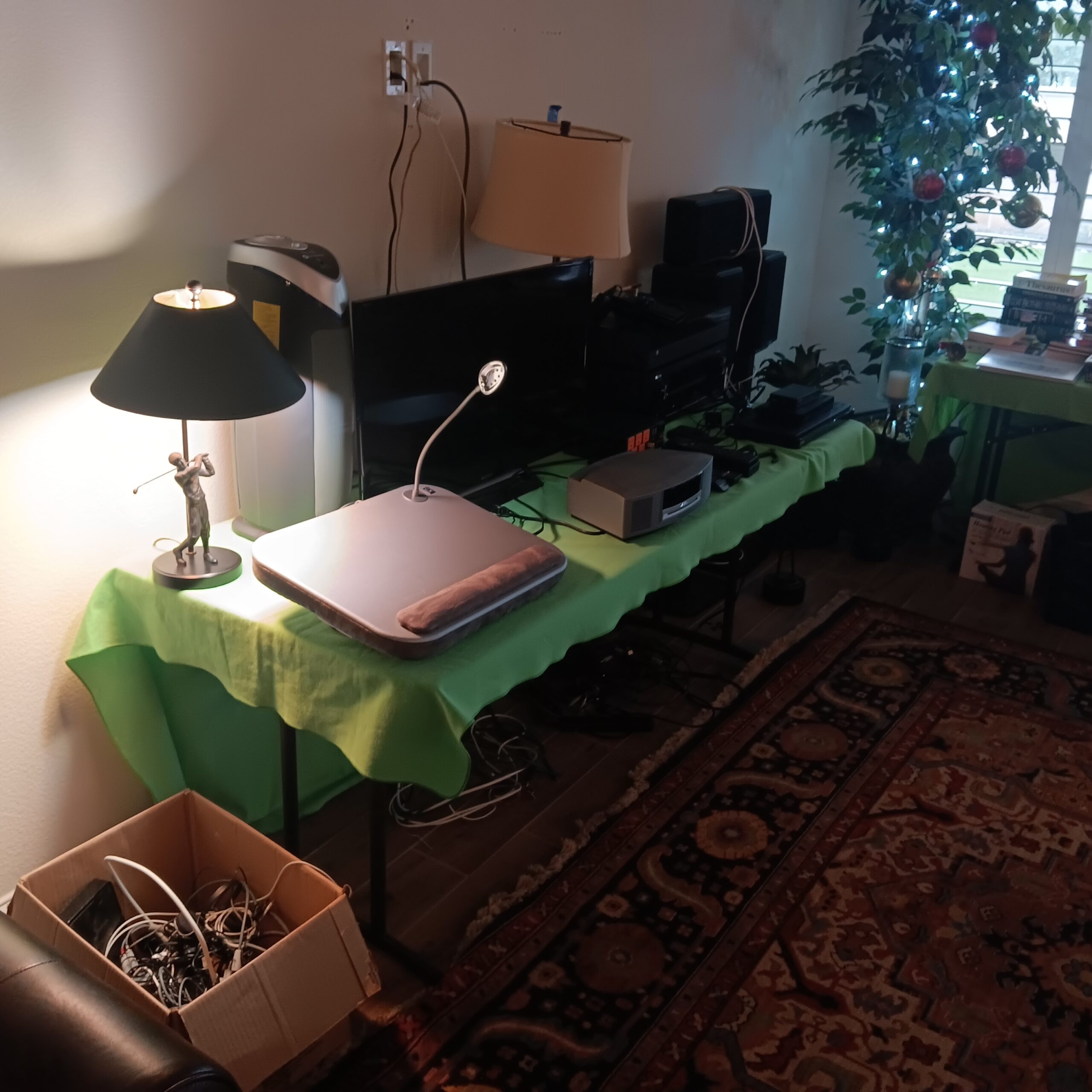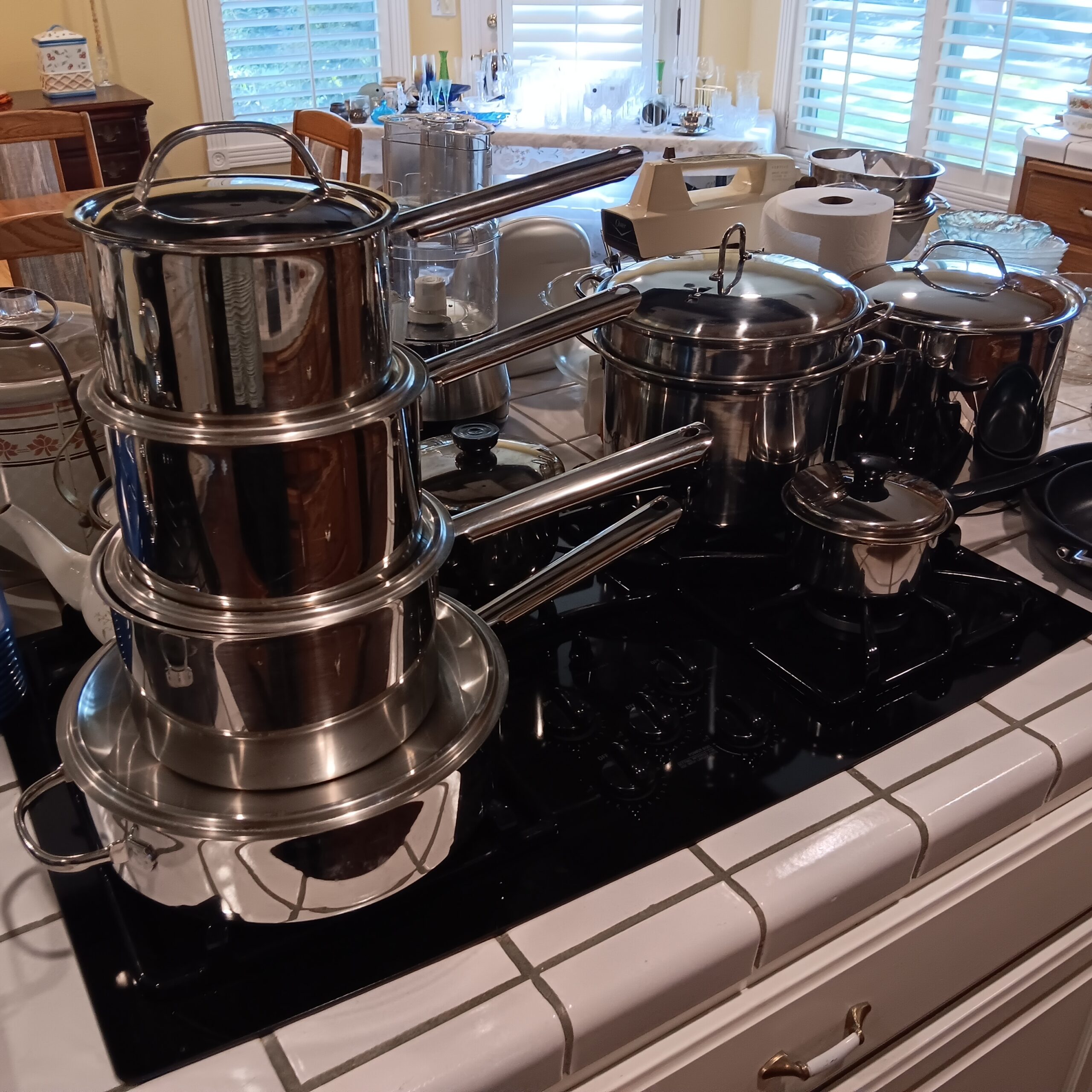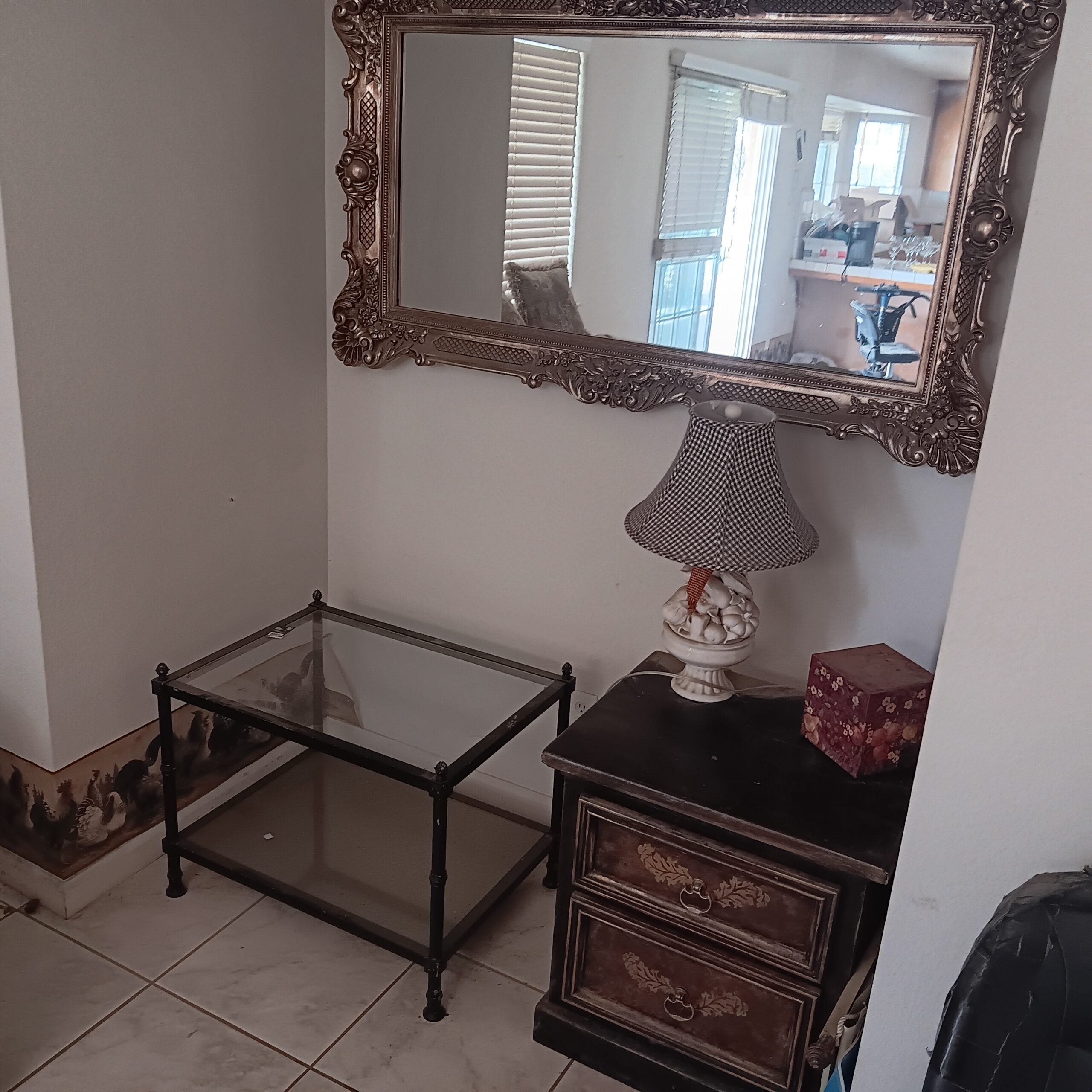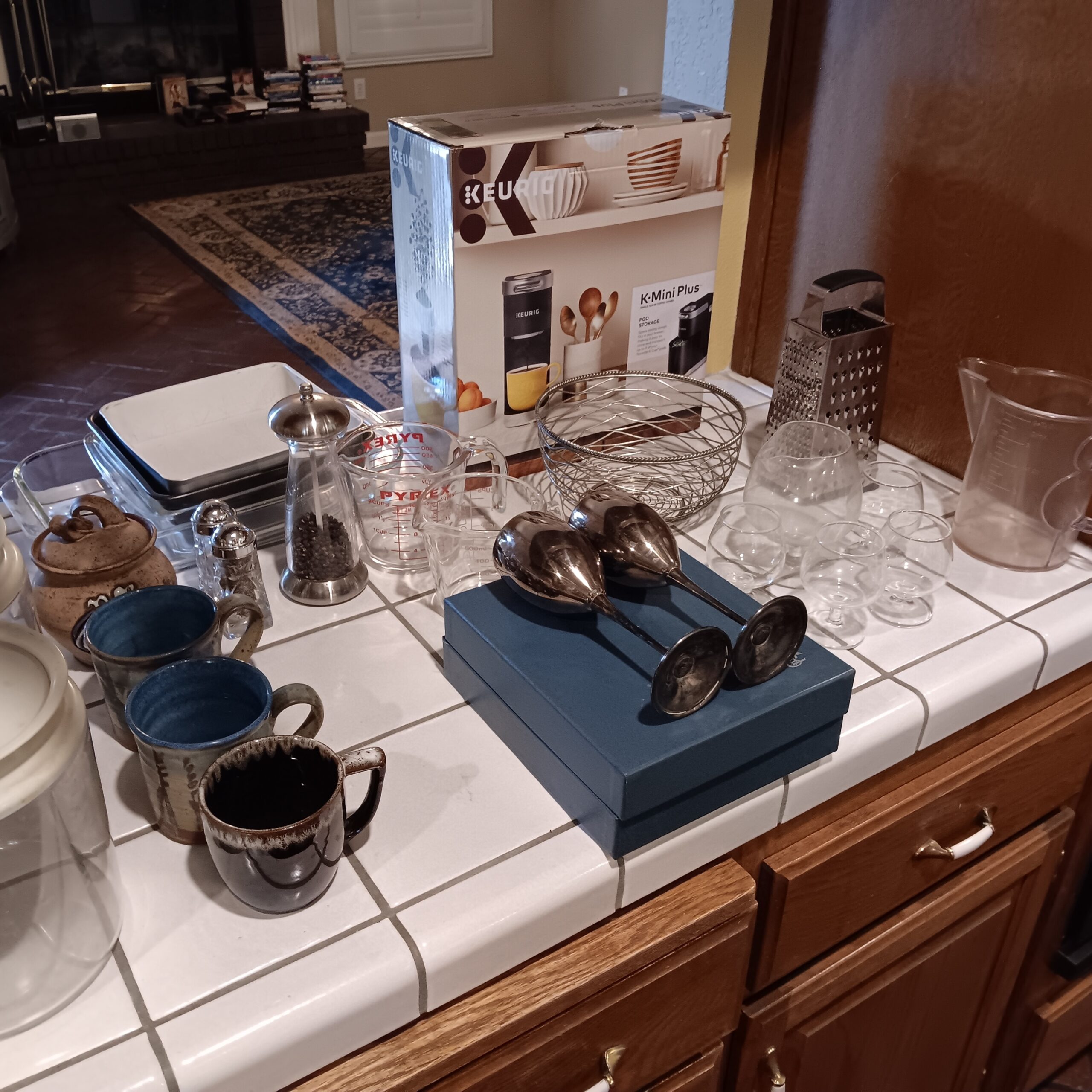 Lots of Golf clubs and golf bags, lawn mower, edger, pressure washer, Fishing gear, patio furniture, home furnishing, kitchen ware, Samsung refrigerator, large fountain, lots of women’s clothes in great / new condition, curved glass curio, upright piano, shelving, cabinets, crystal, and lots of fun stuff to dig through!