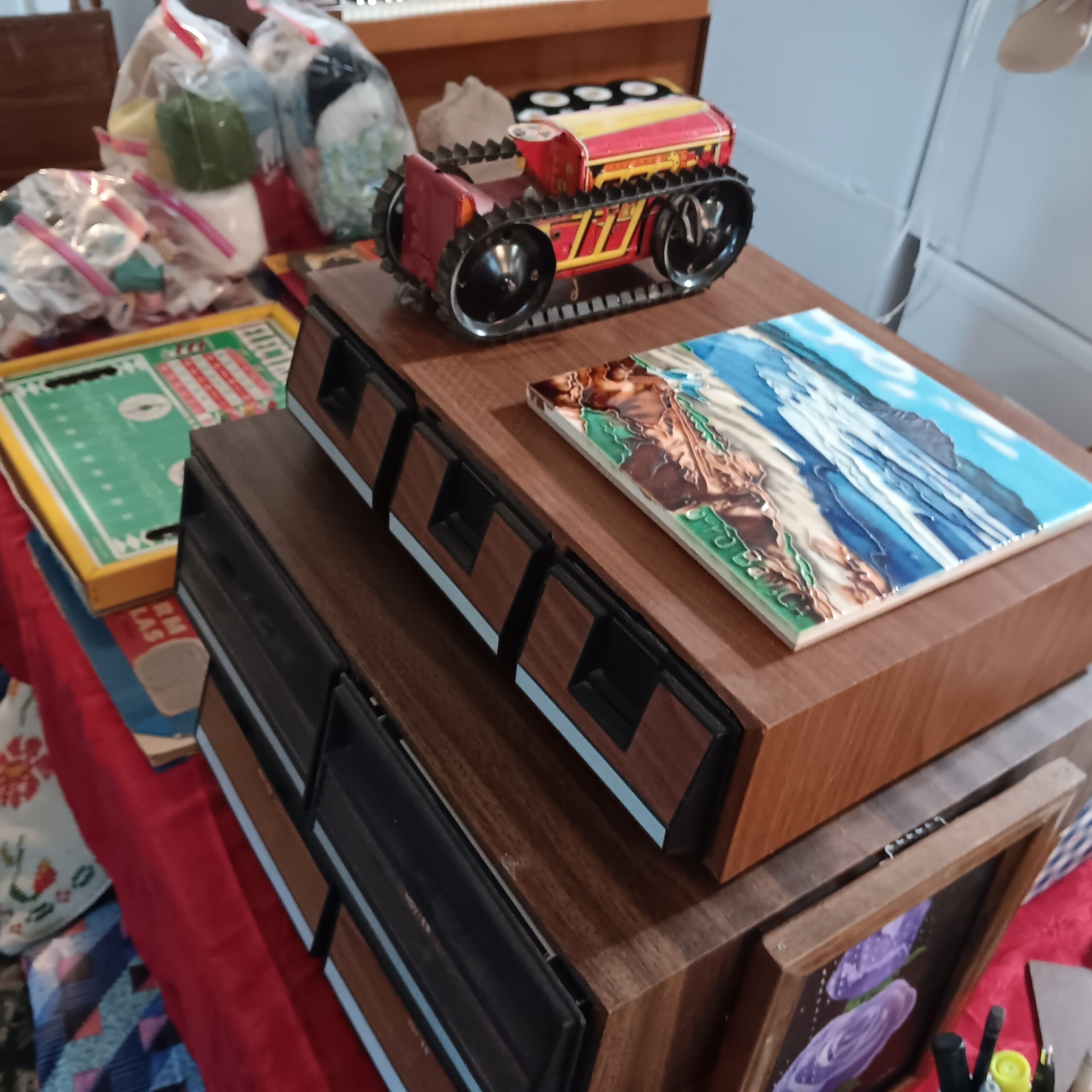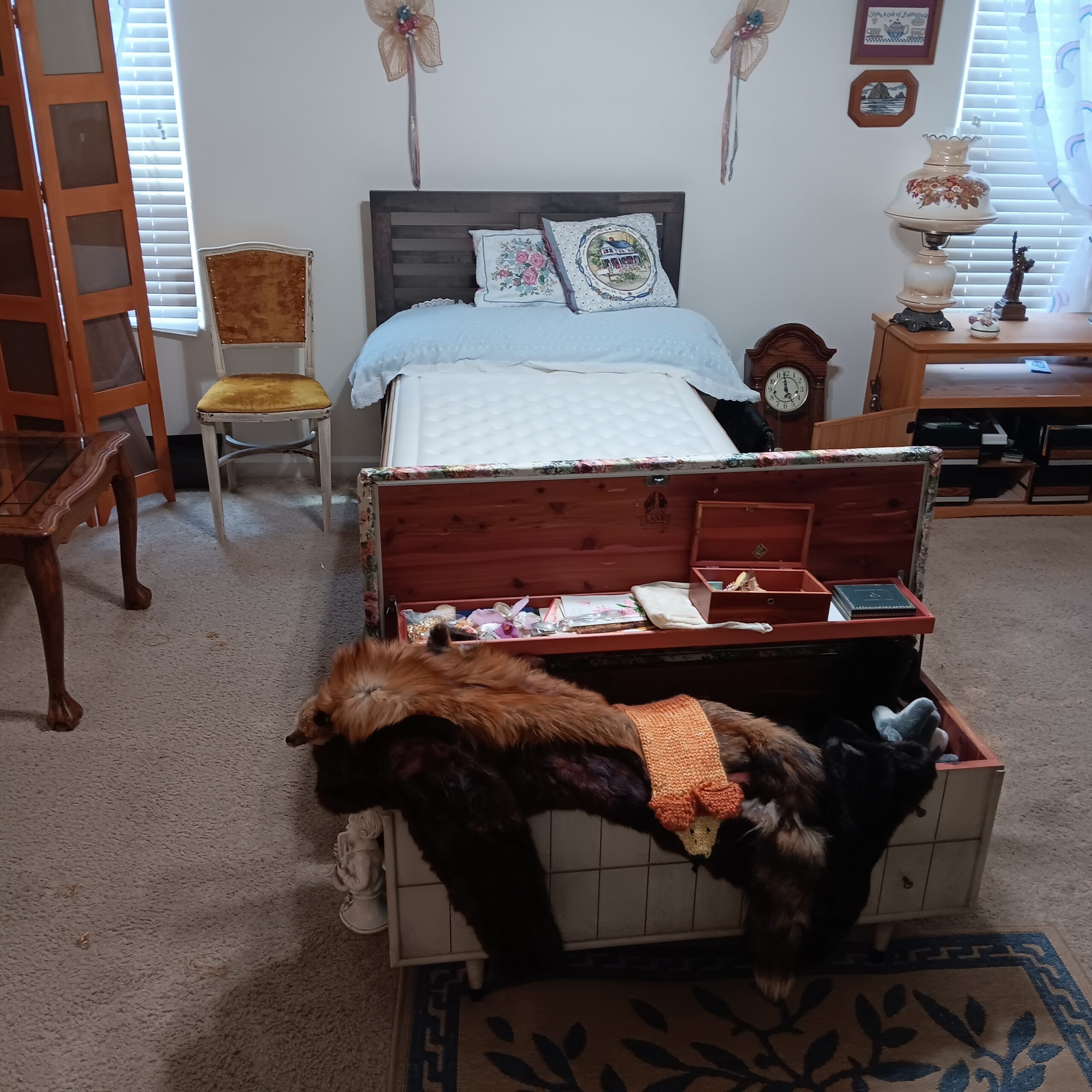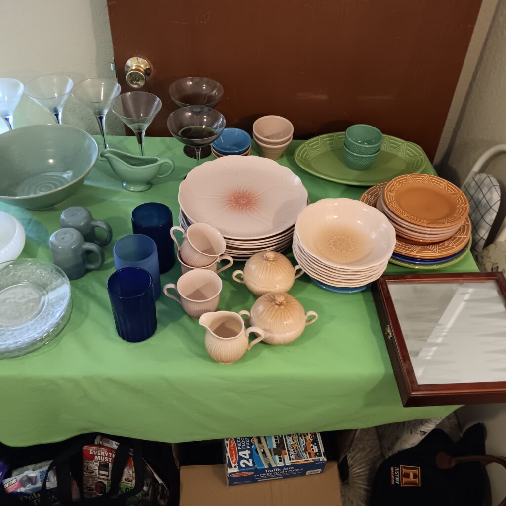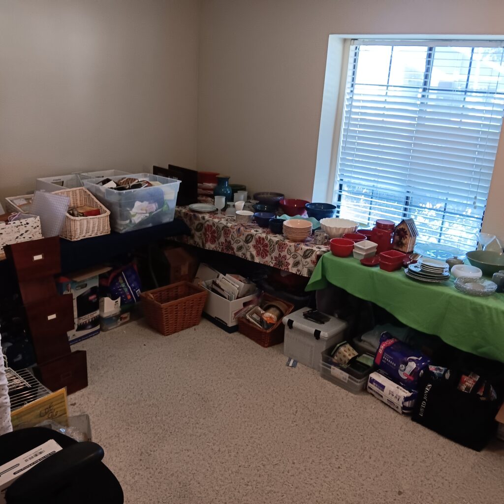 There is extra furniture stuffed in this house and 2 houses worth of wonderful goods to go through.