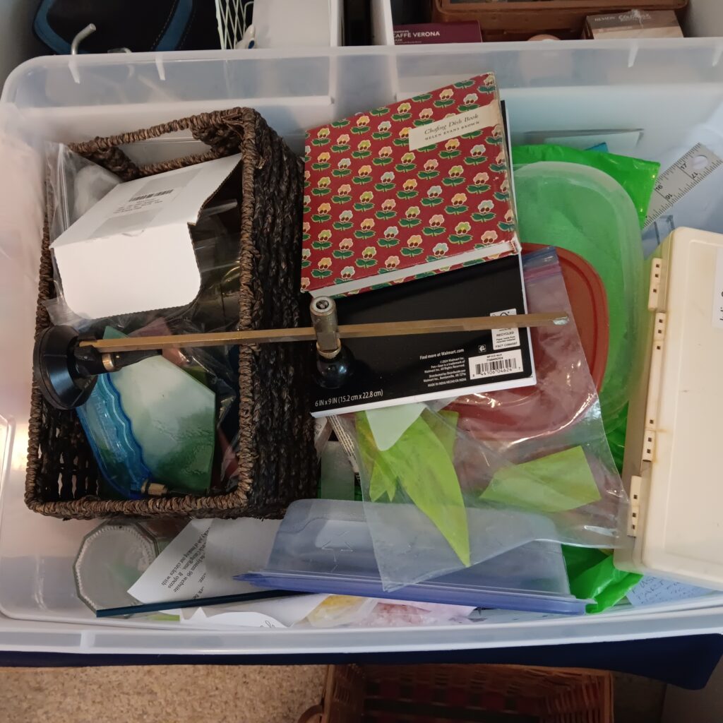 Including Stained glass, Clay, stamps, glass works (melting glass in a kiln) Yes we have the kiln! Watercolor, acrylic, costume jewelry making, bead work, and much more!