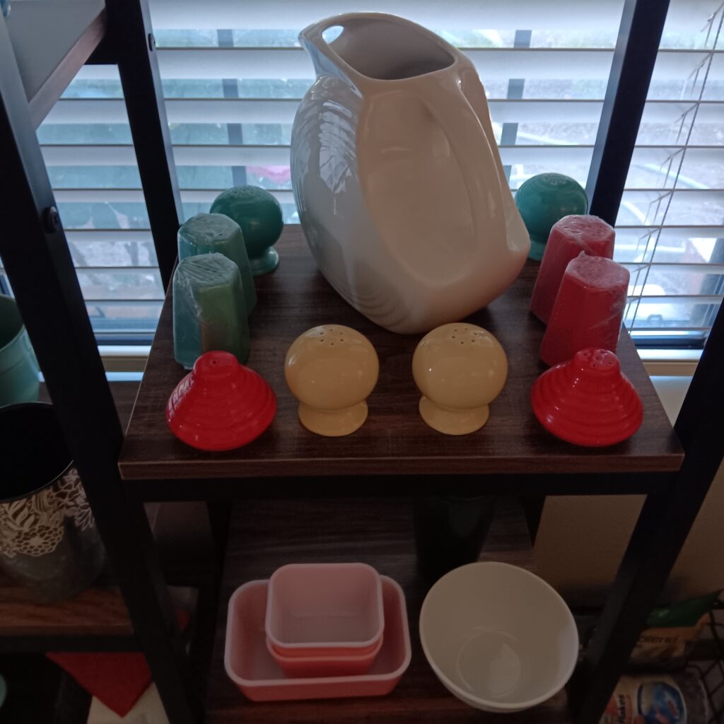 Jadeite dish set no name , 8×8 pan and casserole round dish by Fire king 2000