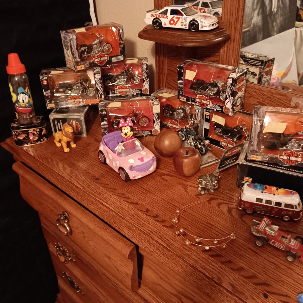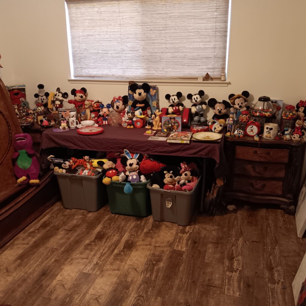 Elsewhere we have a full room of Disney paraphernalia mostly Mickey and Minnie but we got some Donald and Goofy for you in there. Also we have star wars, harley-davidson, pez dispensers.