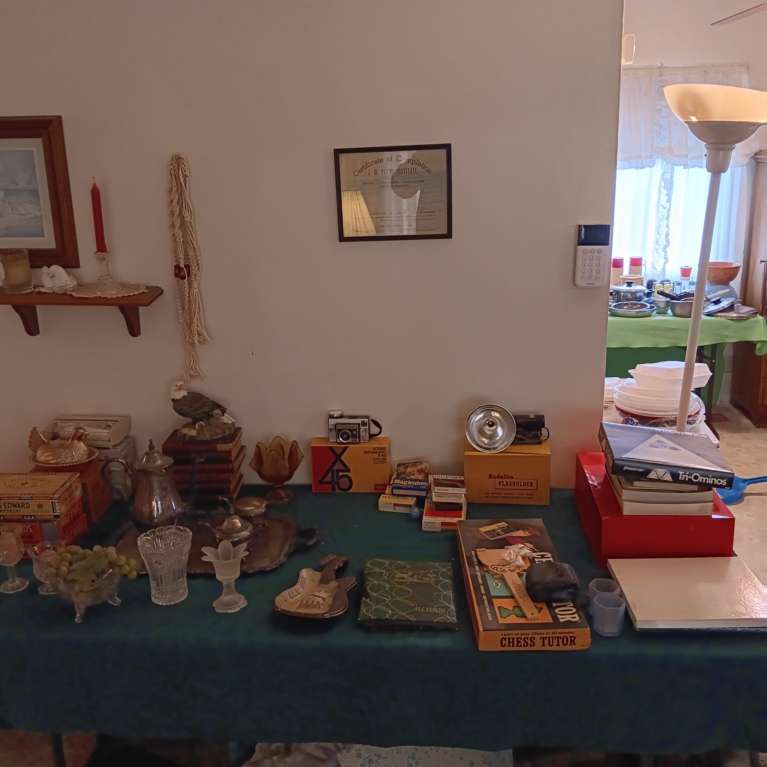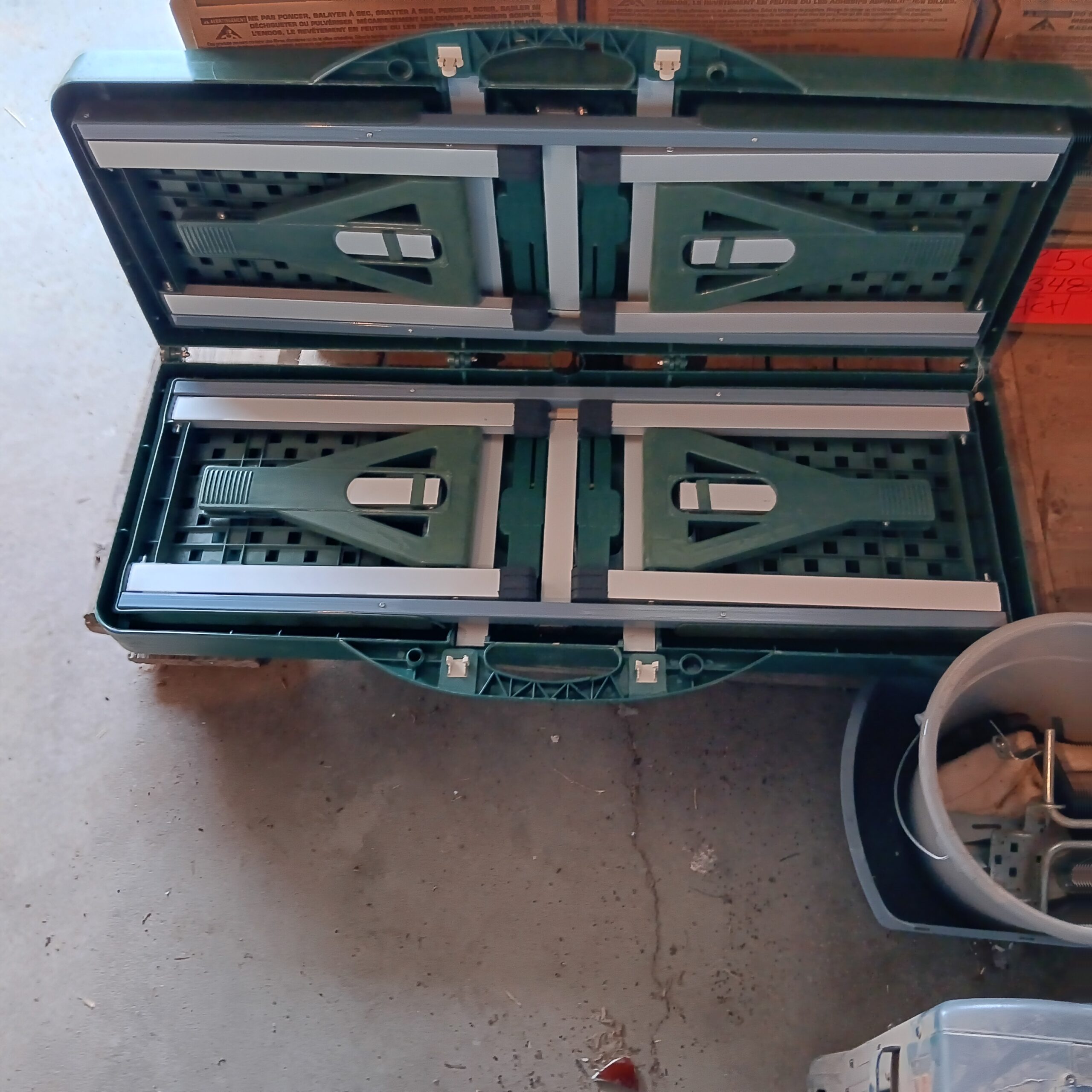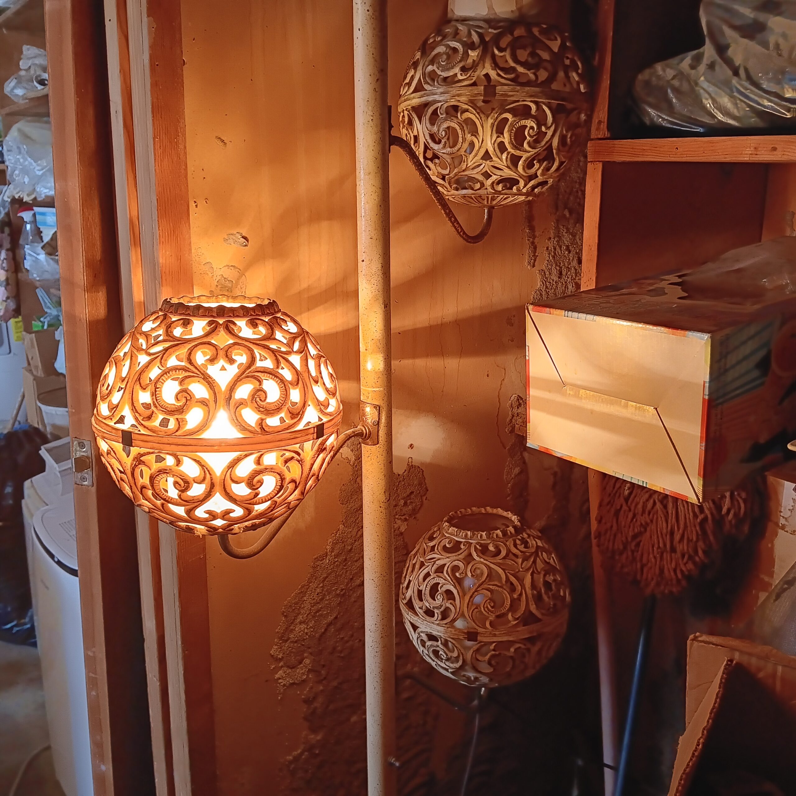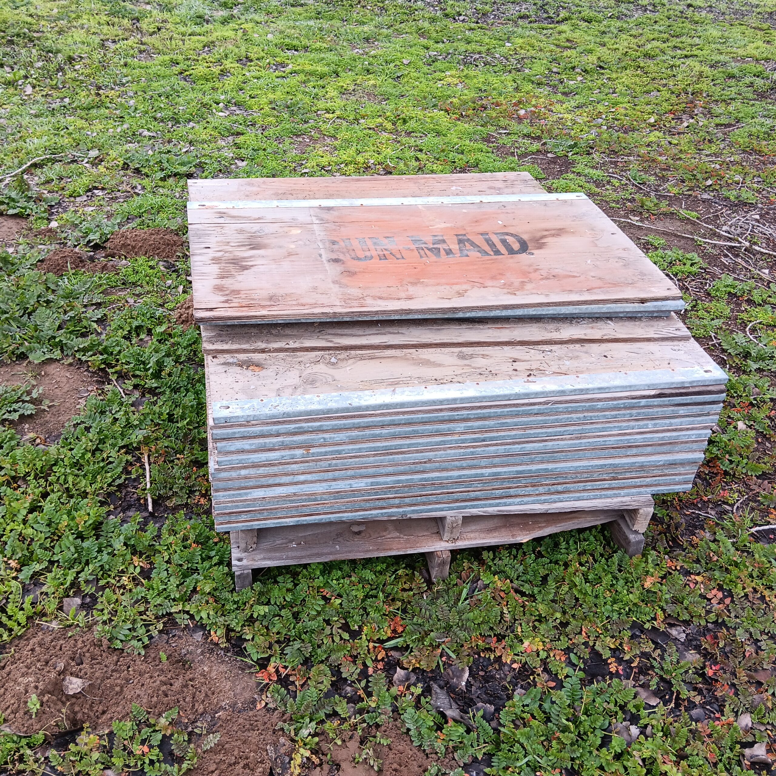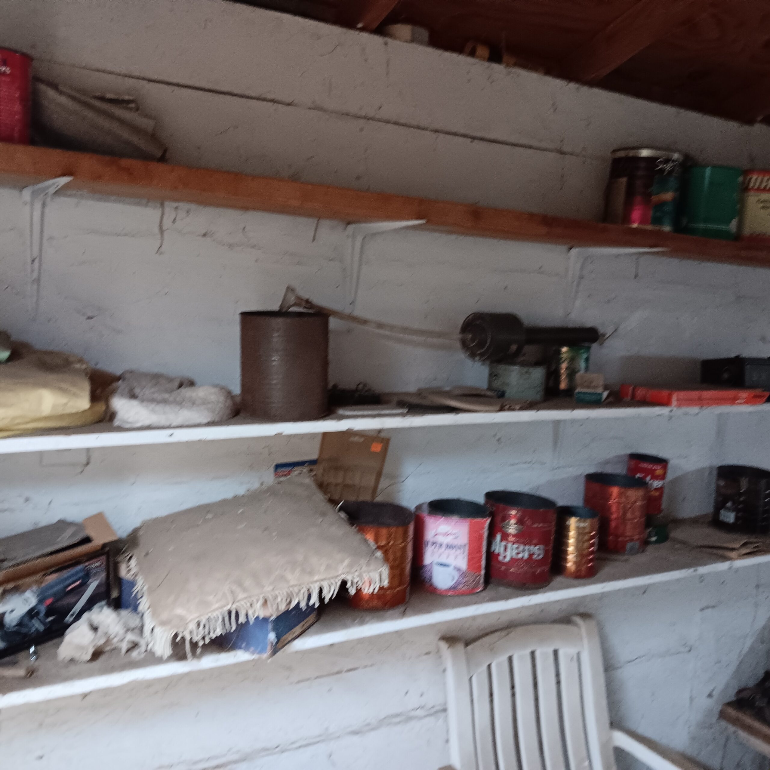 Inside the garage , taking up most of the space we have a lot of new in box lighting fixtures. Brass and glass are back baby! Also , a pallet of linoleum square tiles. Perfect for any professional or home use.