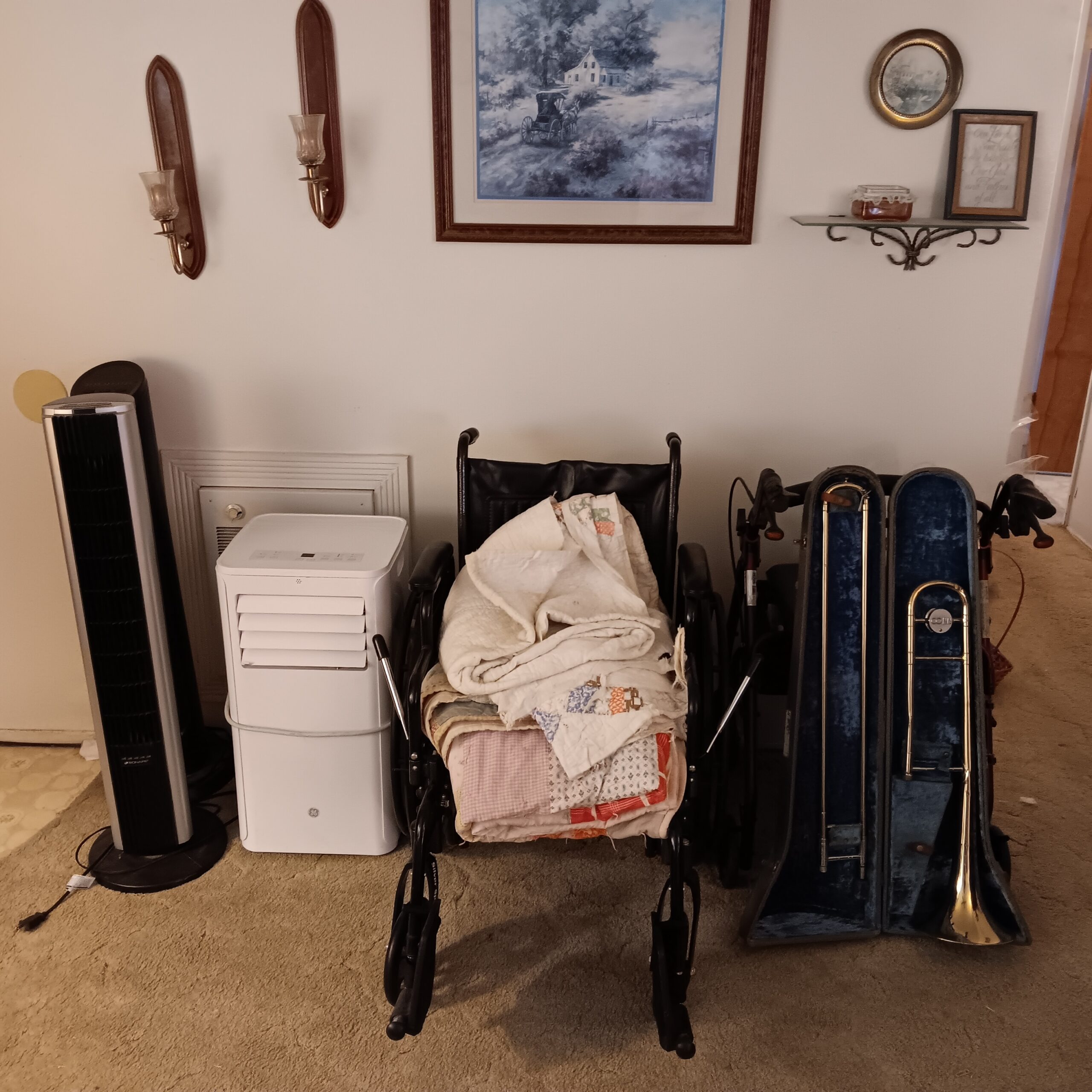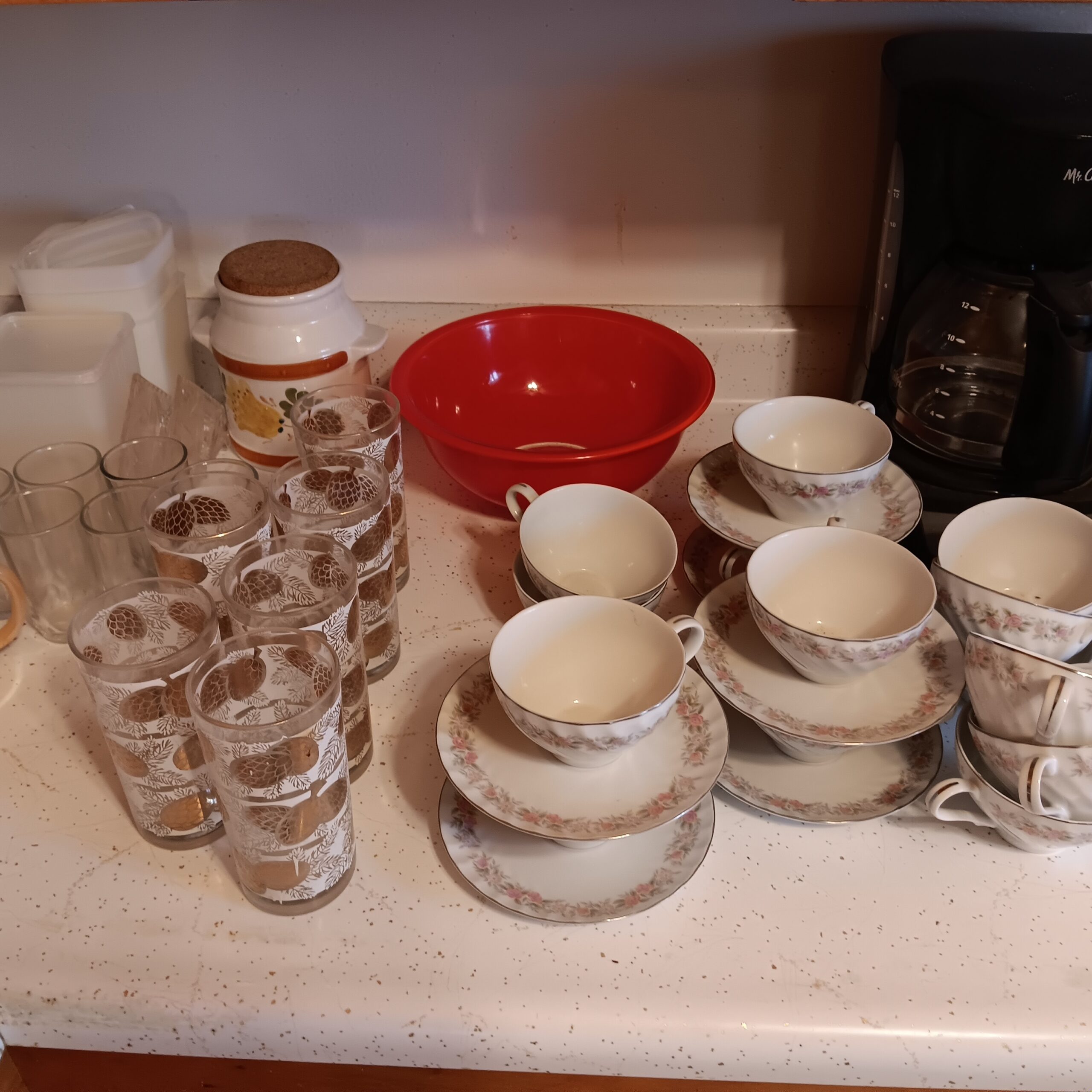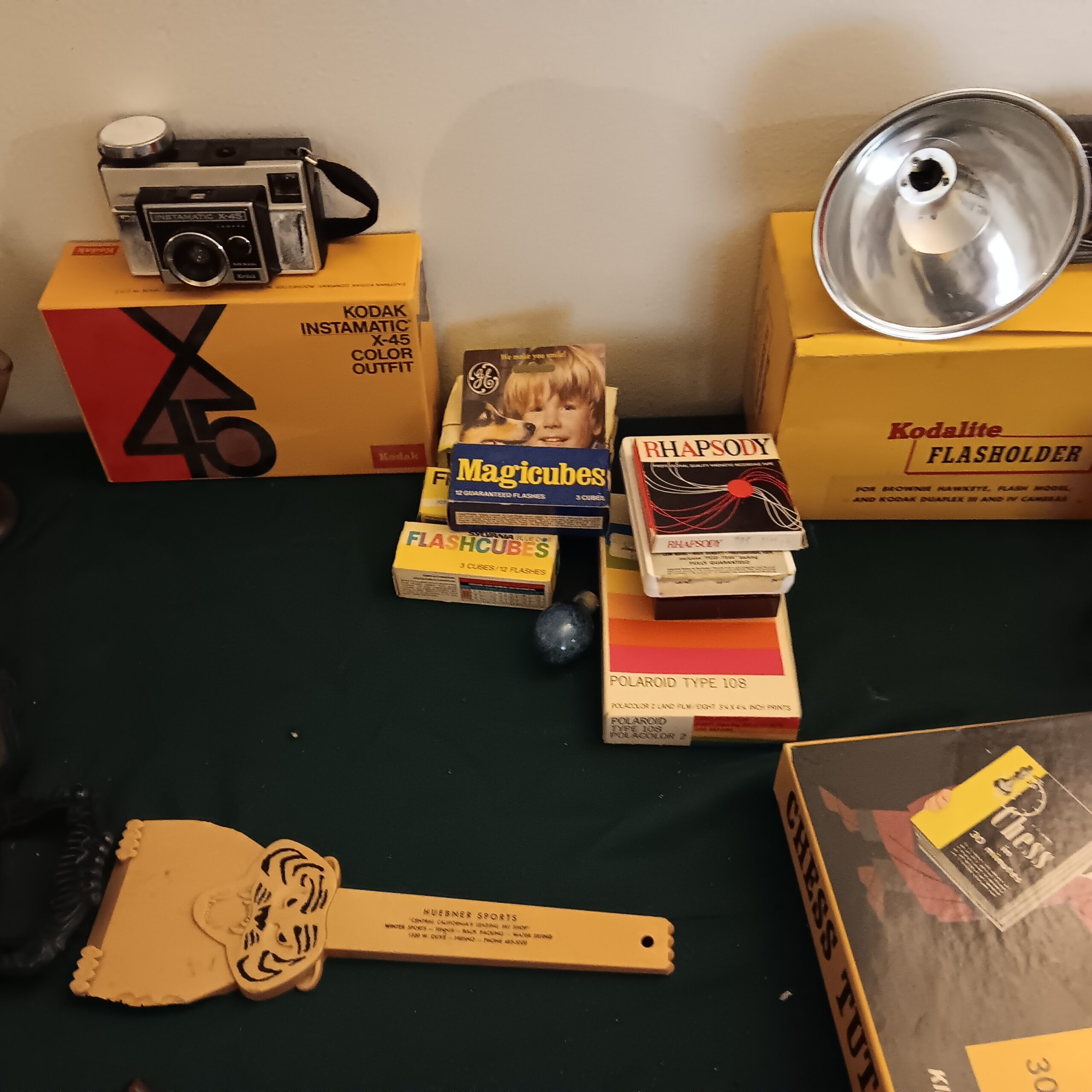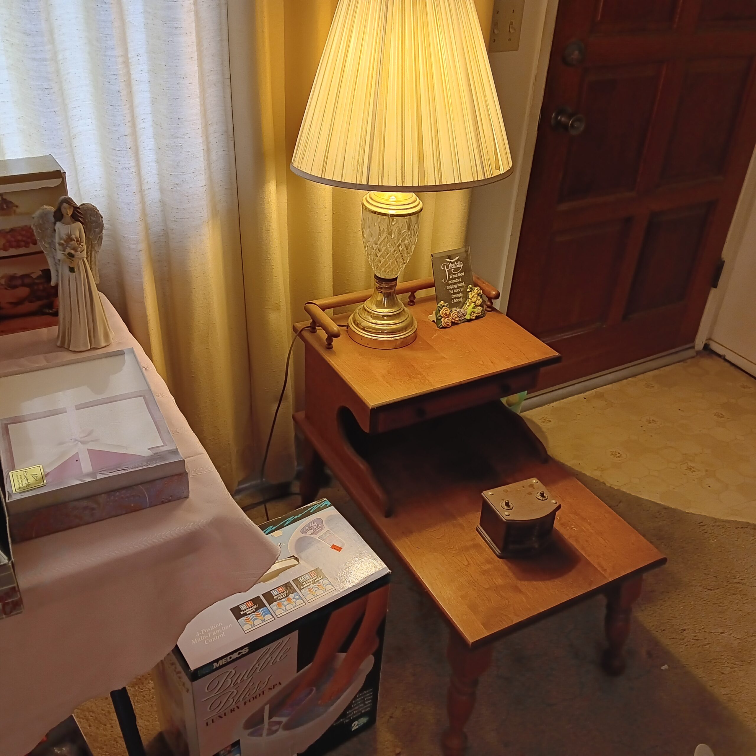 Inside the garage , taking up most of the space we have a lot of new in box lighting fixtures. Brass and glass are back baby! Also , a pallet of linoleum square tiles. Perfect for any professional or home use.