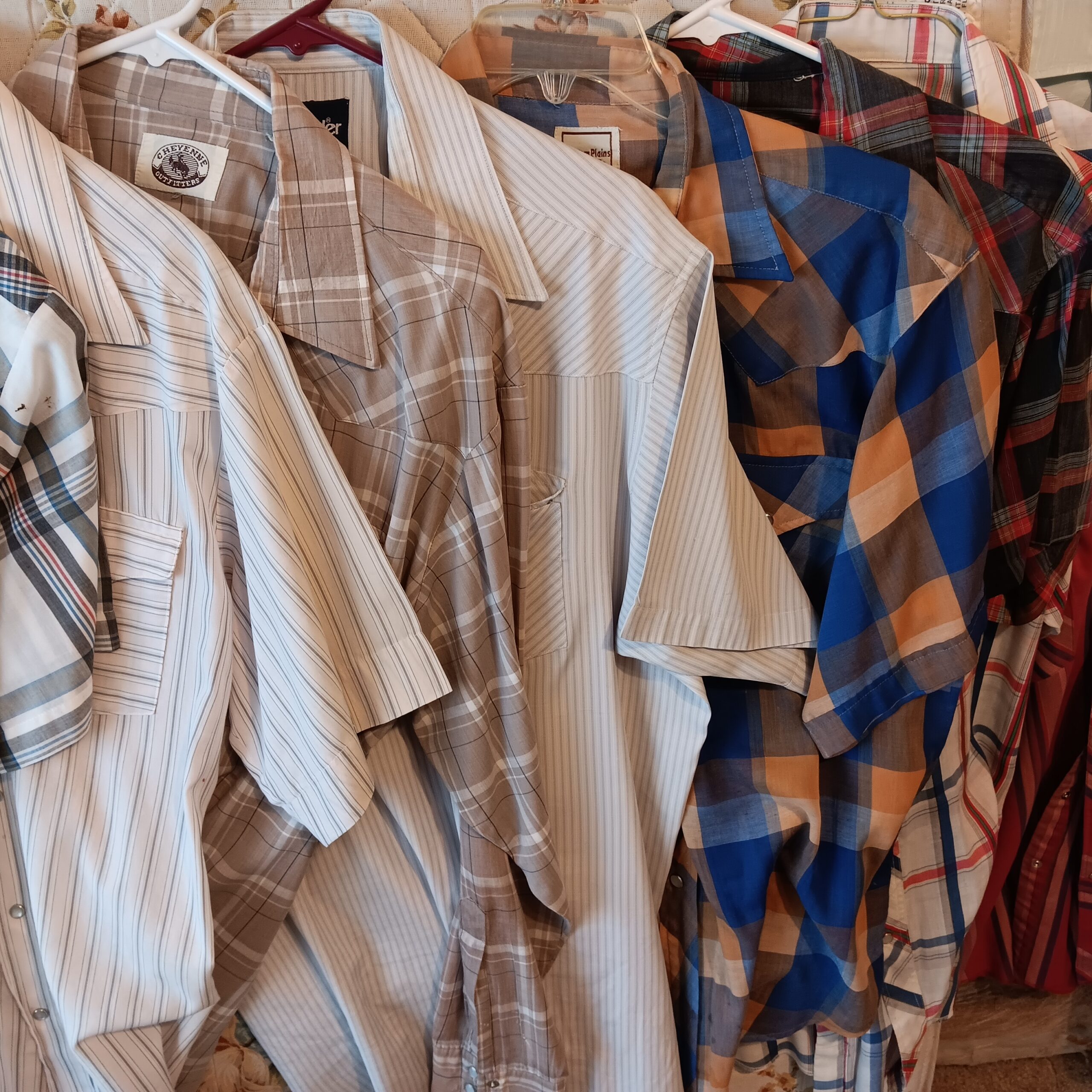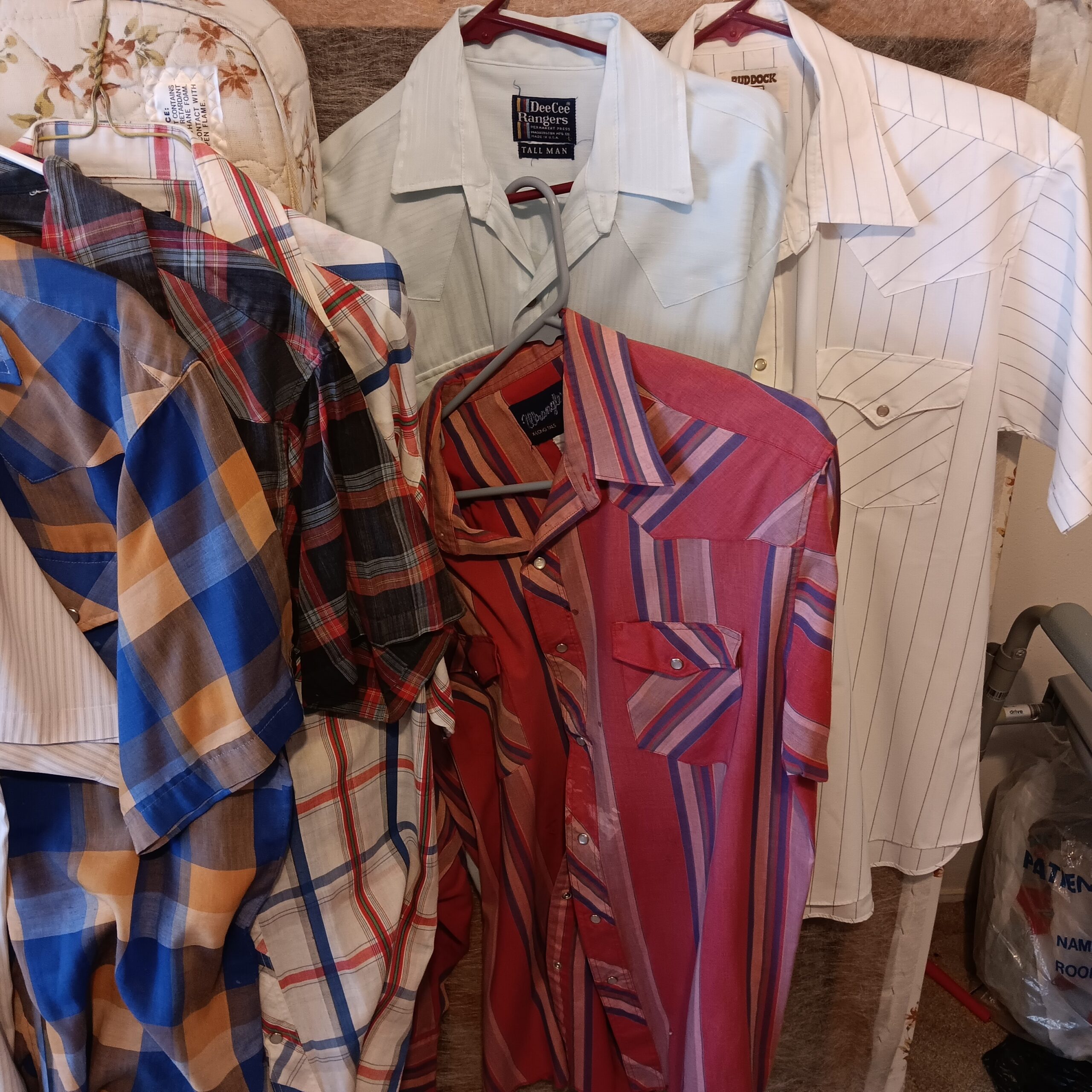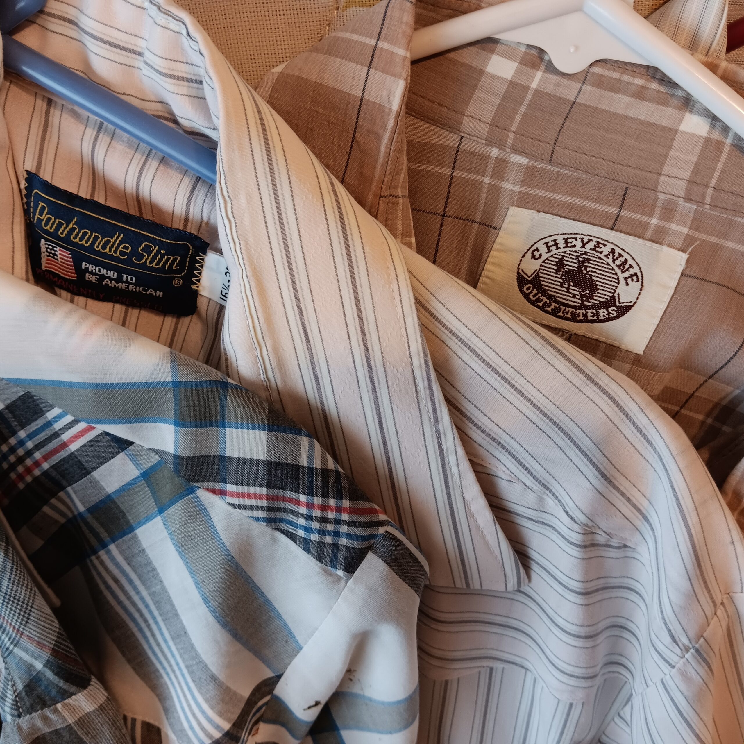 This little farm has what one might expect, tractor implements and pearl snap Wrangler shirts.