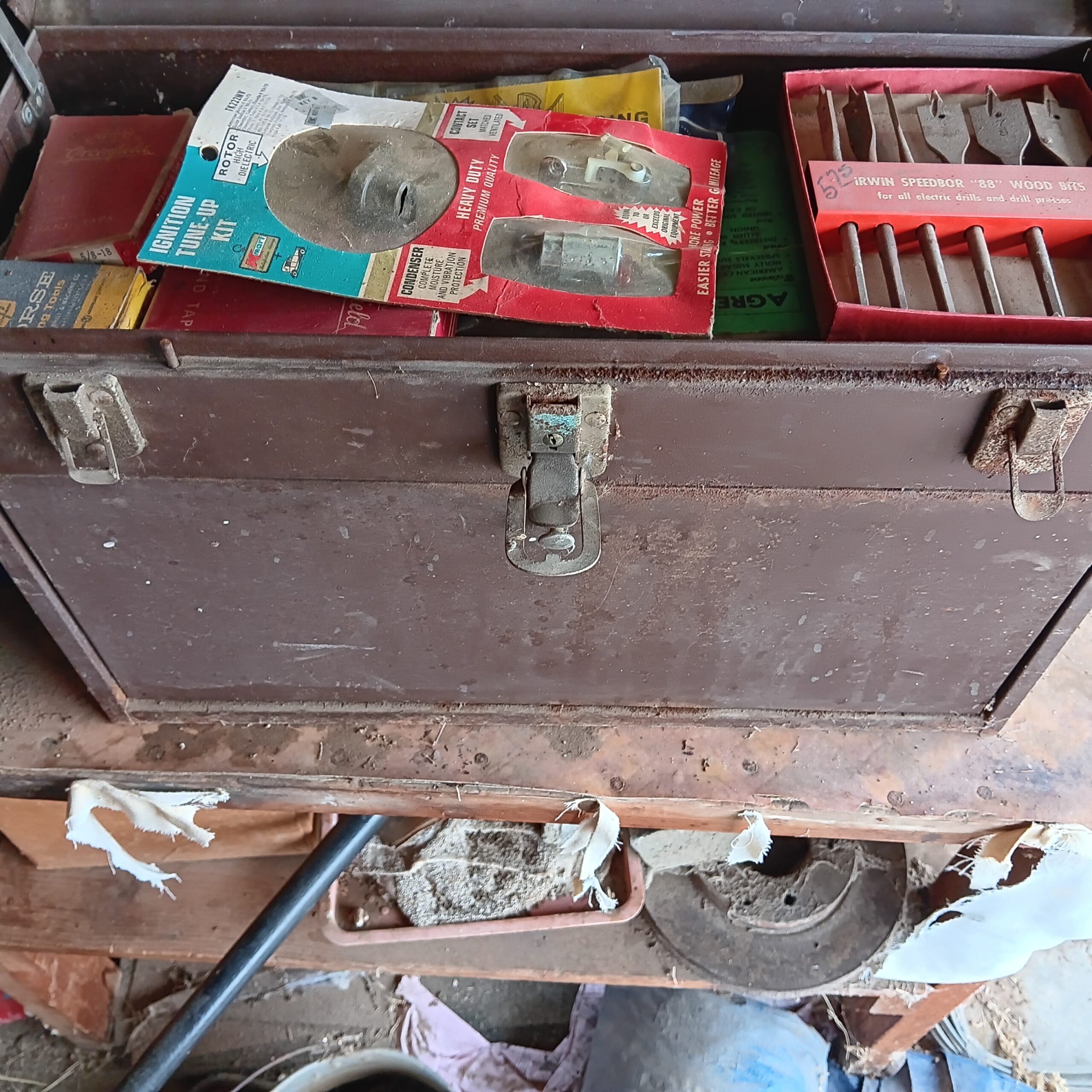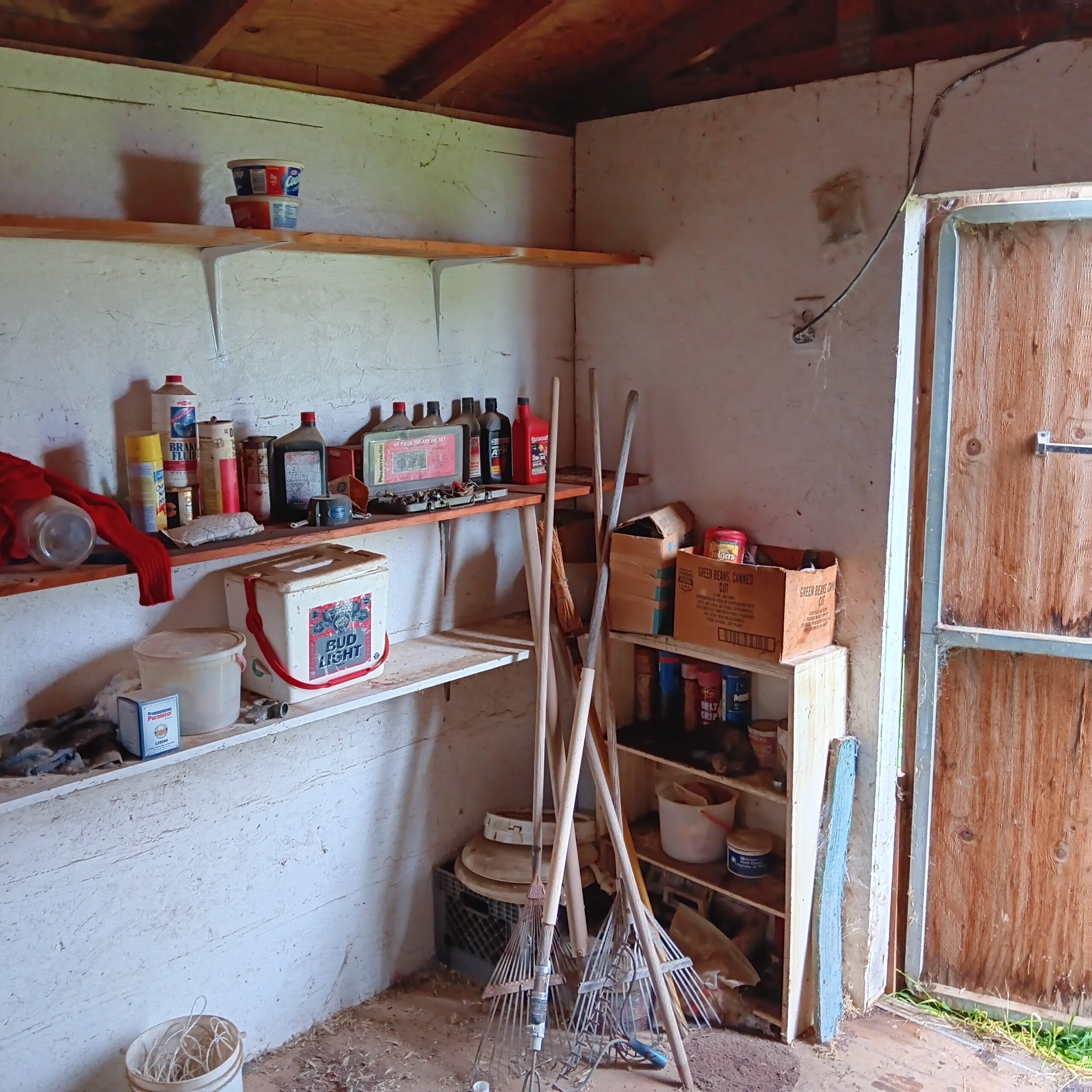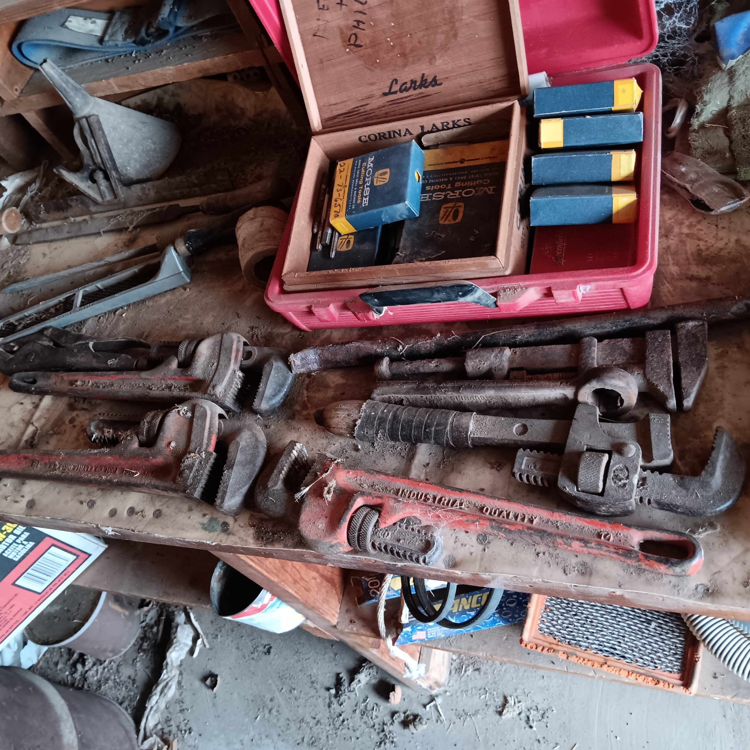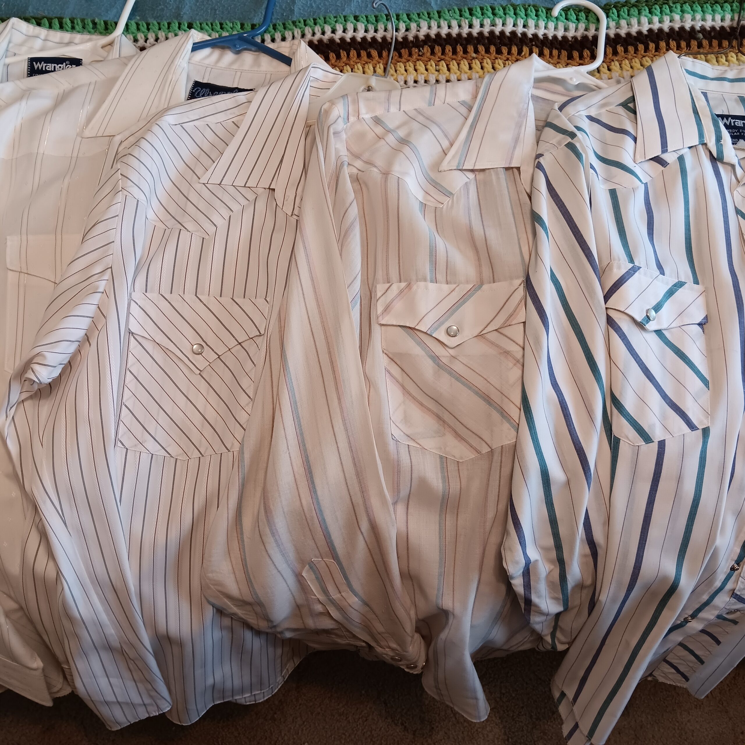 This little farm has what one might expect, tractor implements and pearl snap Wrangler shirts.